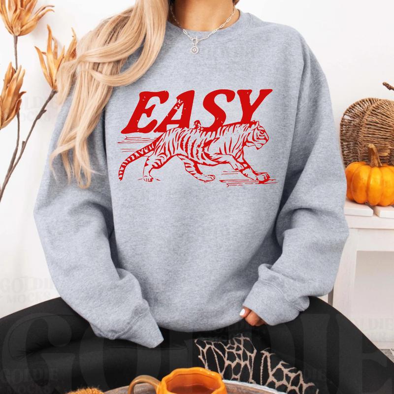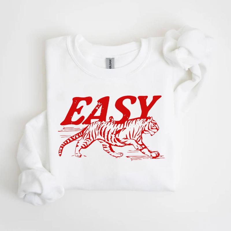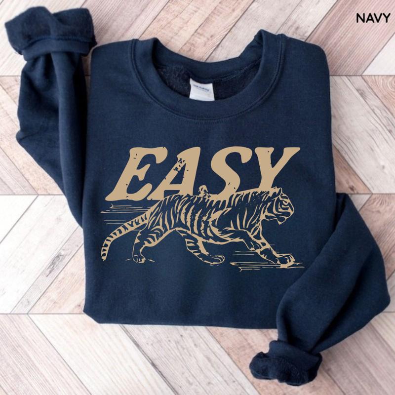Vintage Easy Tiger Sweatshirt, Vintage Animal Graphic Tiger Tee, Unisex Oversized Boho Aesthetic Sweater, Soft Retro Style Top Pullover- Cotton