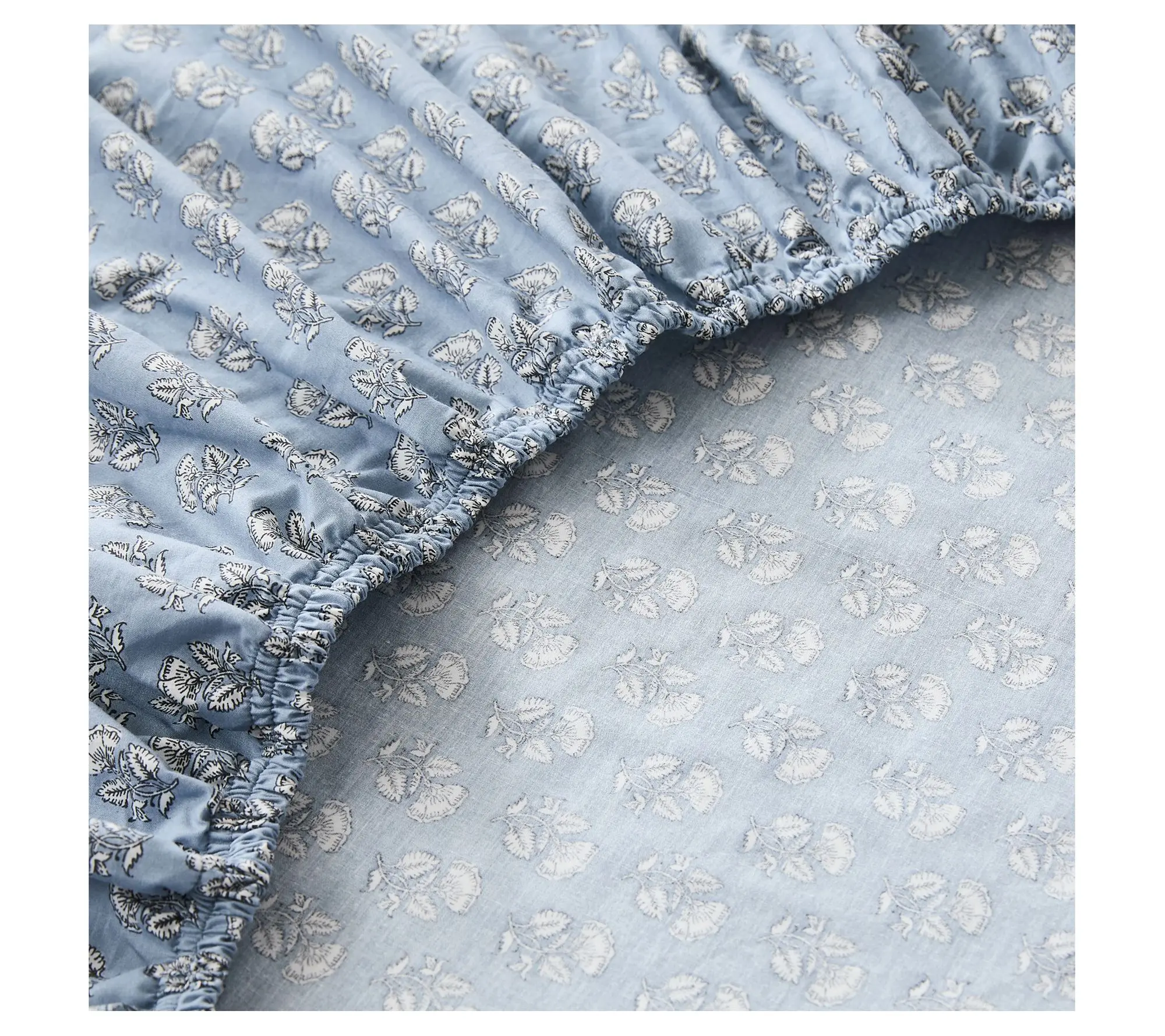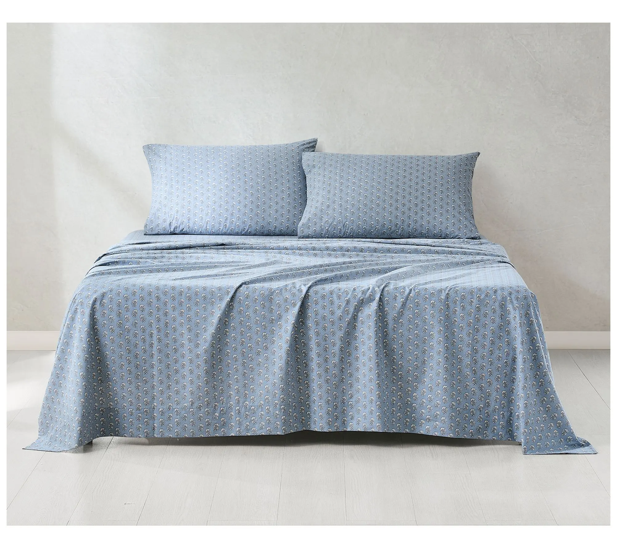 5. Lush Decor Freesia Cotton Sheet Set Blue 4-Piece Set Queen