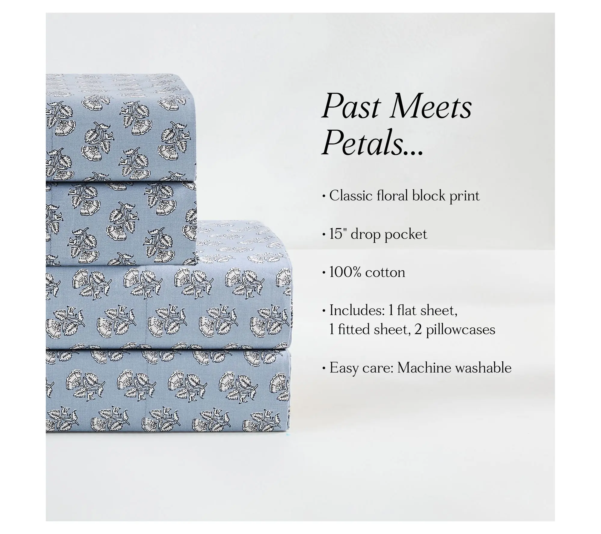 Bring timeless charm to your space with this vintage floral sheet set. Printed with a tiny floral block print with a modern twist. These bed sheets make a statement in a vintage or coquette styled bedroom. Crafted from 100% cotton, for a lightweight, breathable feel. This 4 piece sheet set includes 1 flat sheet, 1 fitted sheet, and 2 pillowcases. STANDARD 100 by OEKO-TEX certified, all components have been tested and certified free from harmful substances. Machine washable for easy care.;4-Pc Set Includes: 1 Flat Sheet, 1 Fitted Sheet, 2 Pillow Cases