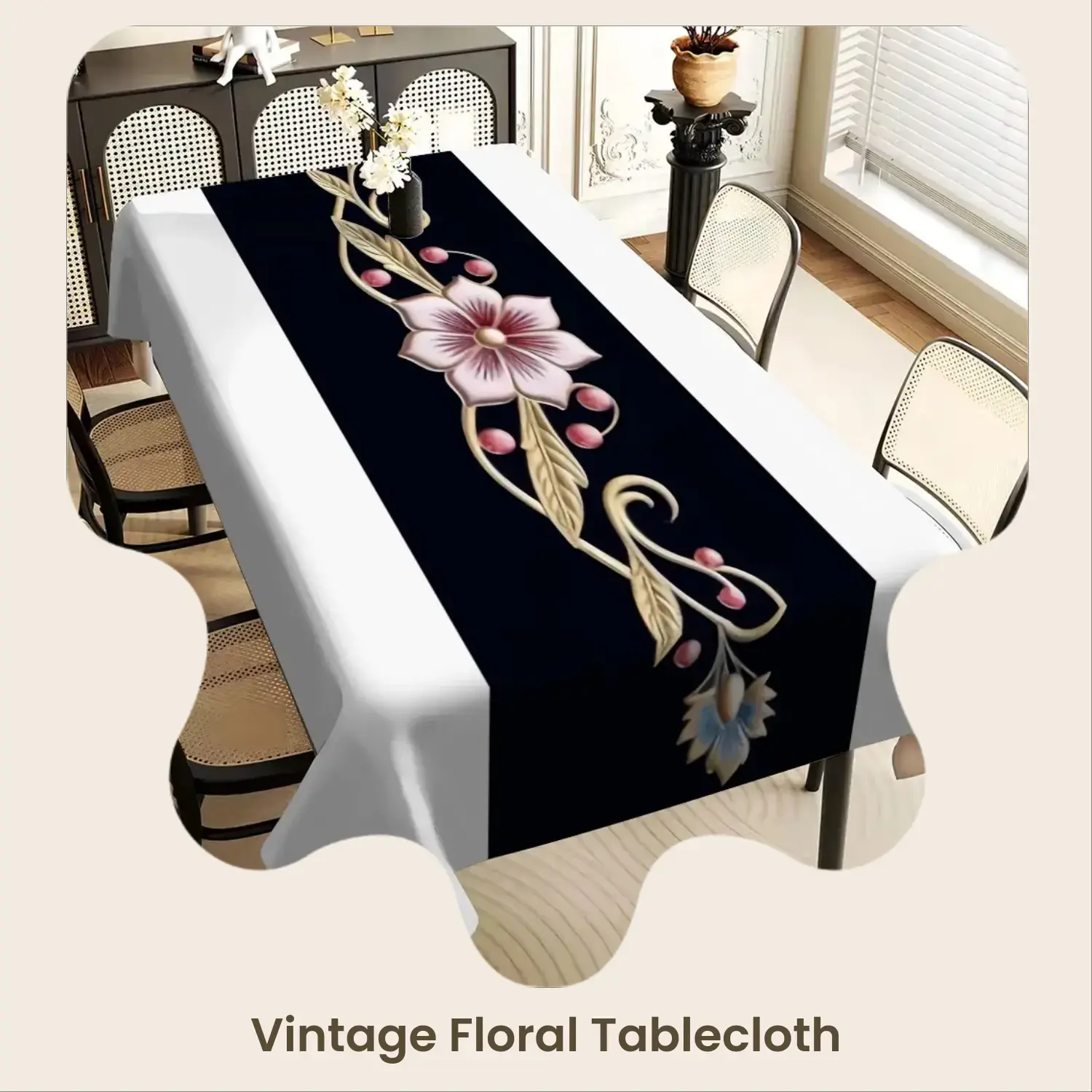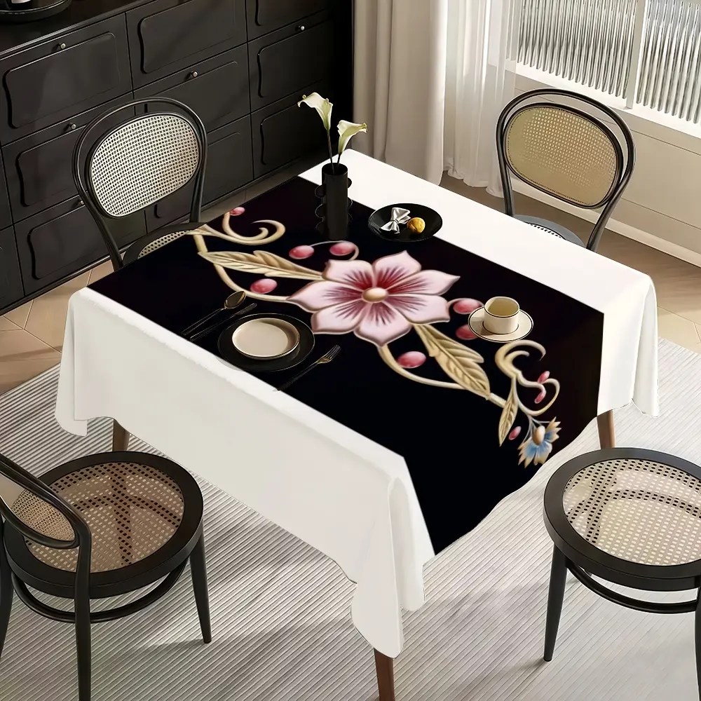 5. JIT 1pc 2D flat vintage black and white floral pattern rectangular tablecloth, for kitchen, living room, and dining table, kitchen accessory, party, room & outdoor decorative tablecloth, a tablecloth gift for friends