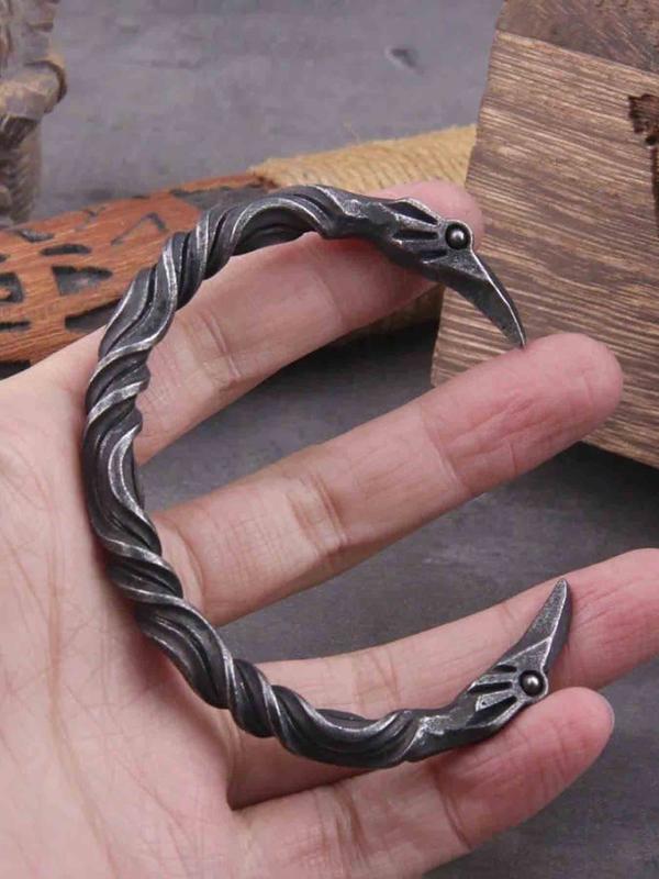 Vintage Gothic Dark Punk Crow Design Carved Open Bracelet, Trendy Punk Men's Party Style Bracelet, Unique Personality Accessory