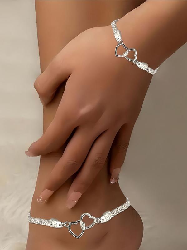 Vintage Heart Linked Bracelet Anklet Set, Creative Fashion Simple Versatile Jewelry for Women, Daily Party Personalized Accessories