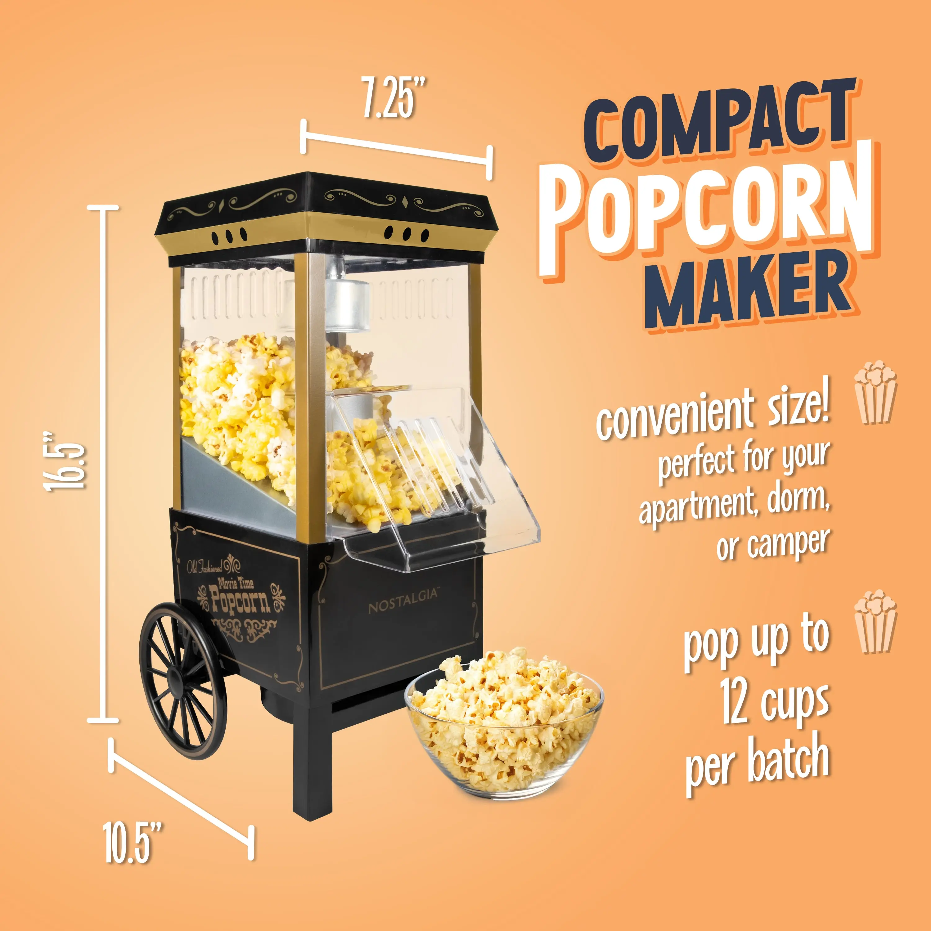 ·This popcorn machine is a replica of old-fashioned, street-corner stands from the early 1900s. It's a table-top-sized party pleaser. 🕰️