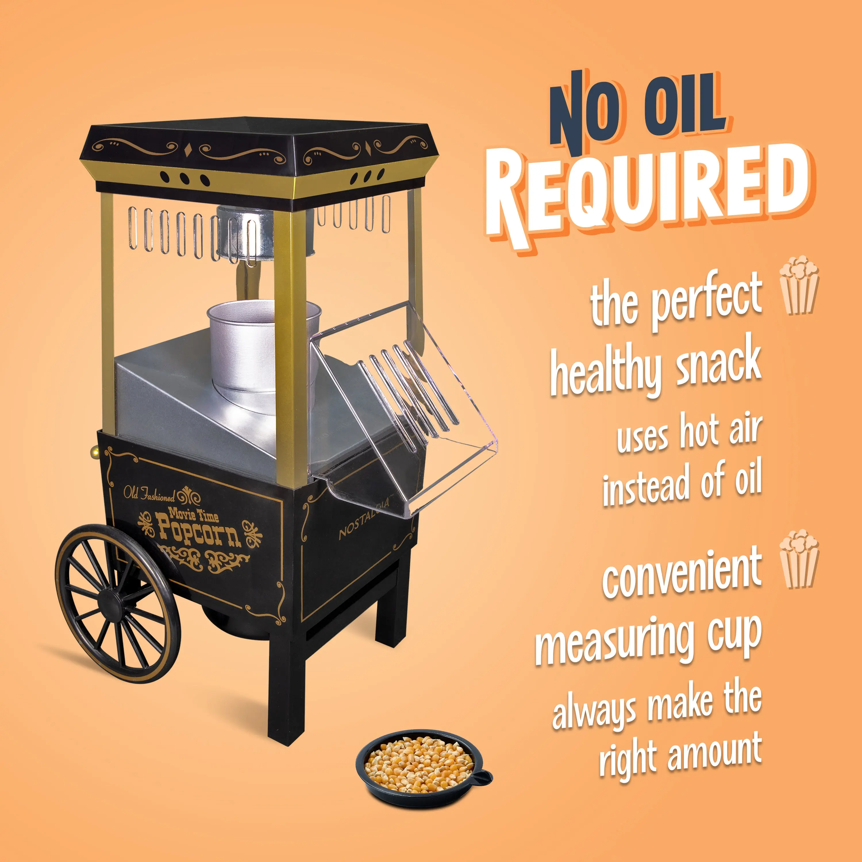 ·The kit includes a measuring cap to ensure the proper number of kernels and doubles as a butter melting tray. 🍿