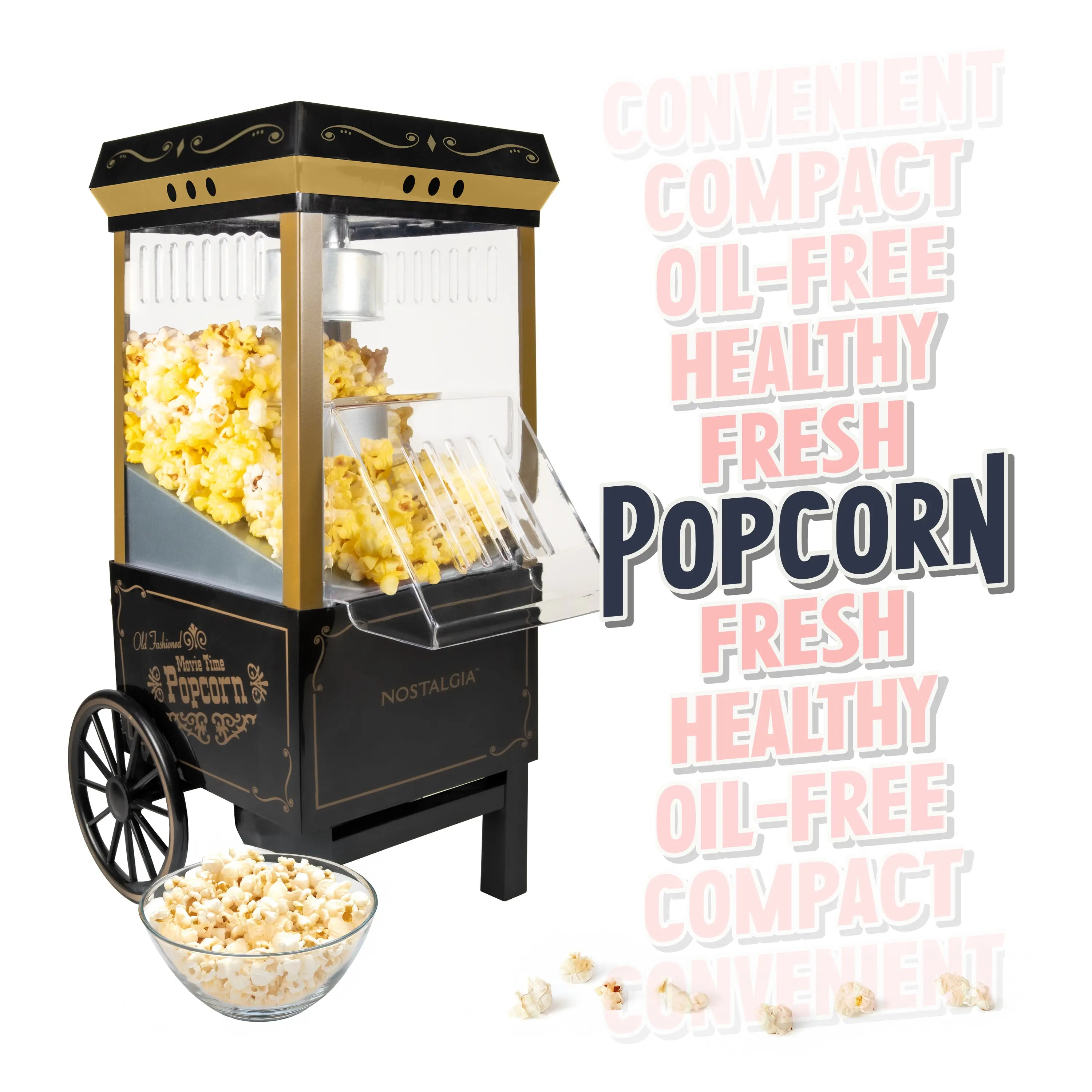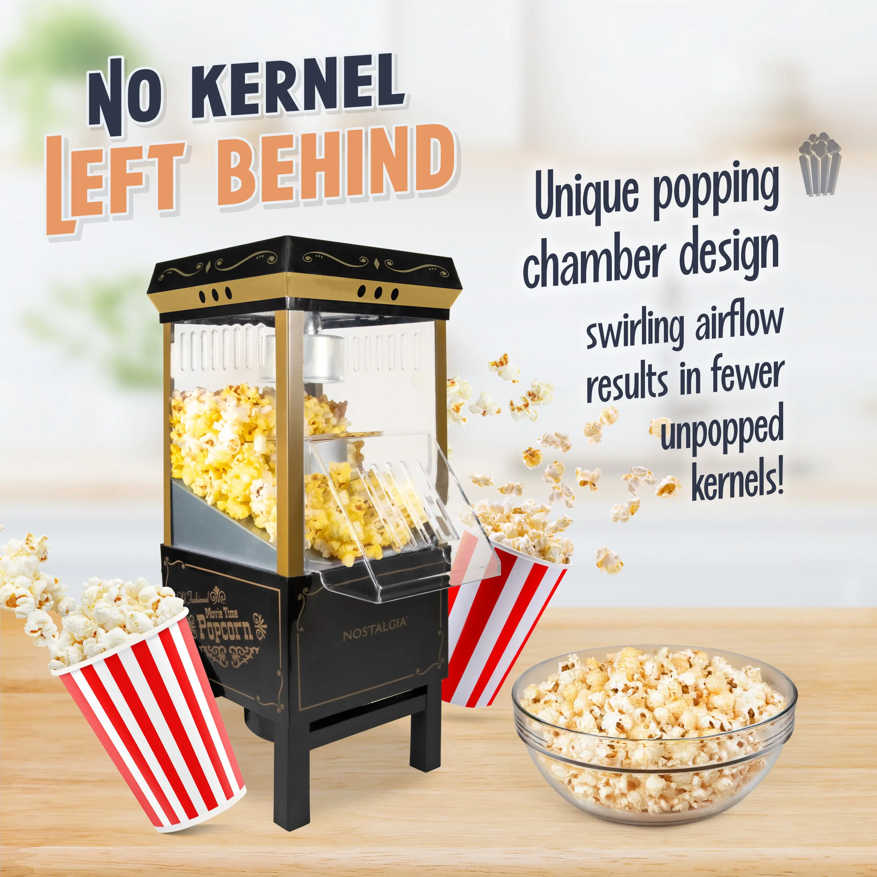 ·The unique popping chamber design creates swirling airflow, reducing unpopped kernels. The popcorn chute guides popped kernels accurately into your bowl. 🌟