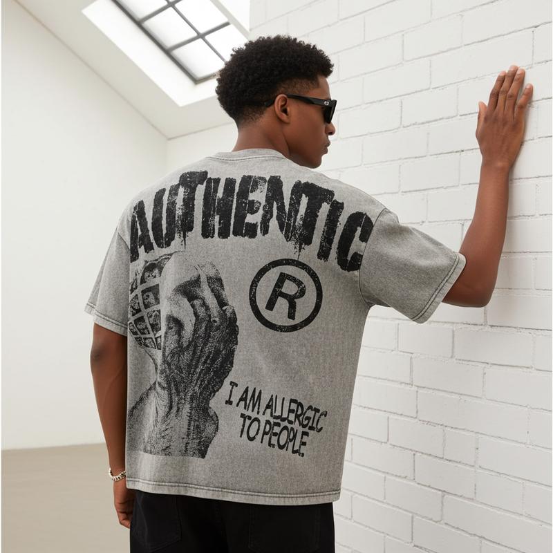 5. Sopula Studio Men Vintage I Am Allergic To People Graphic Acid Wash Casual Streetwear gray Tshirt