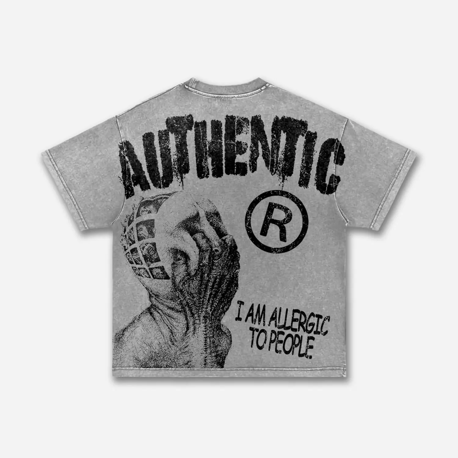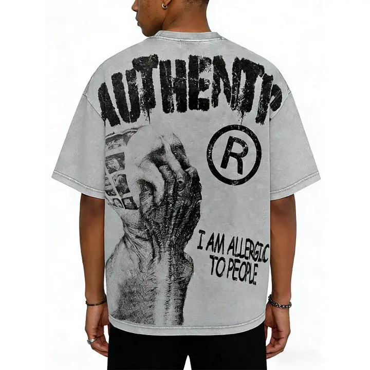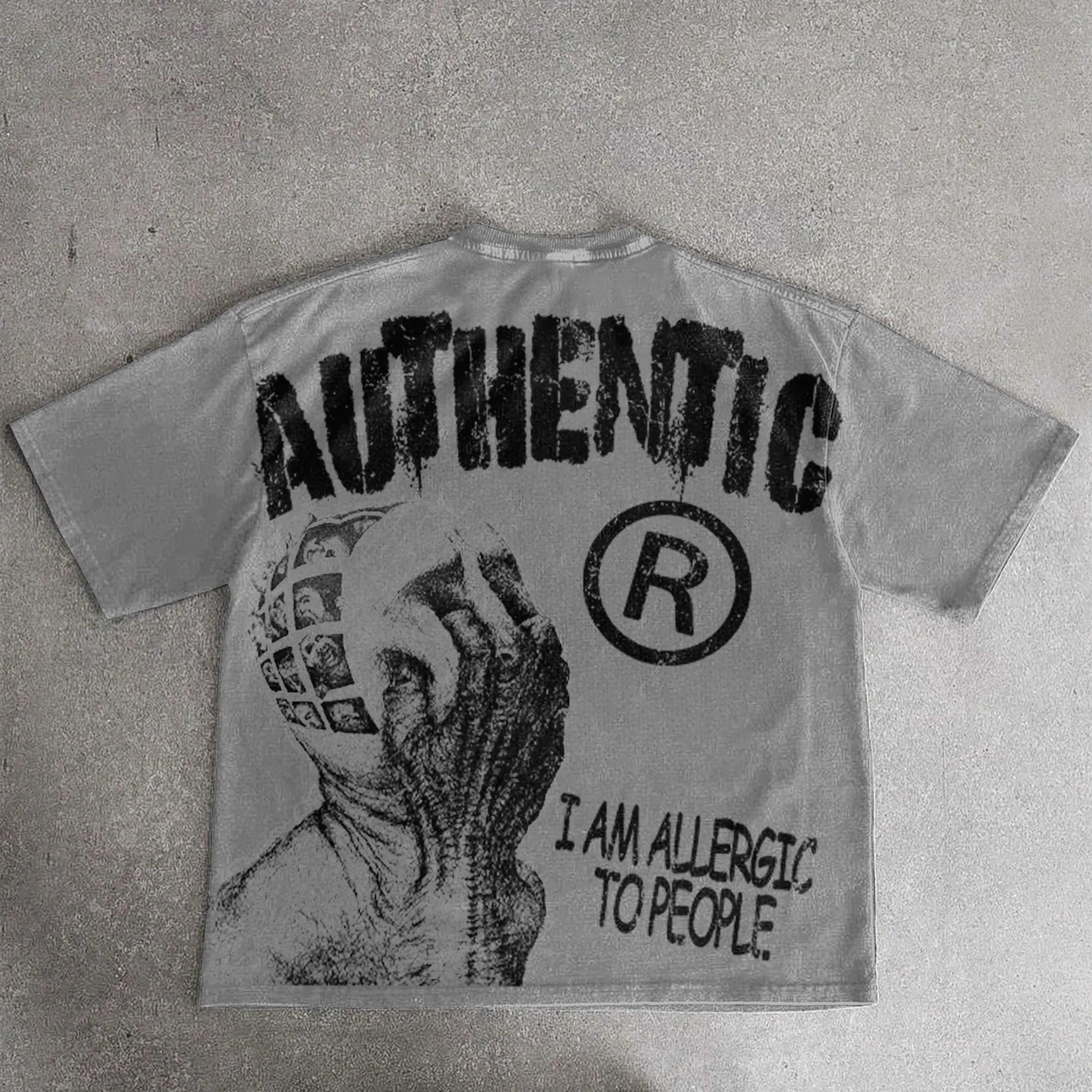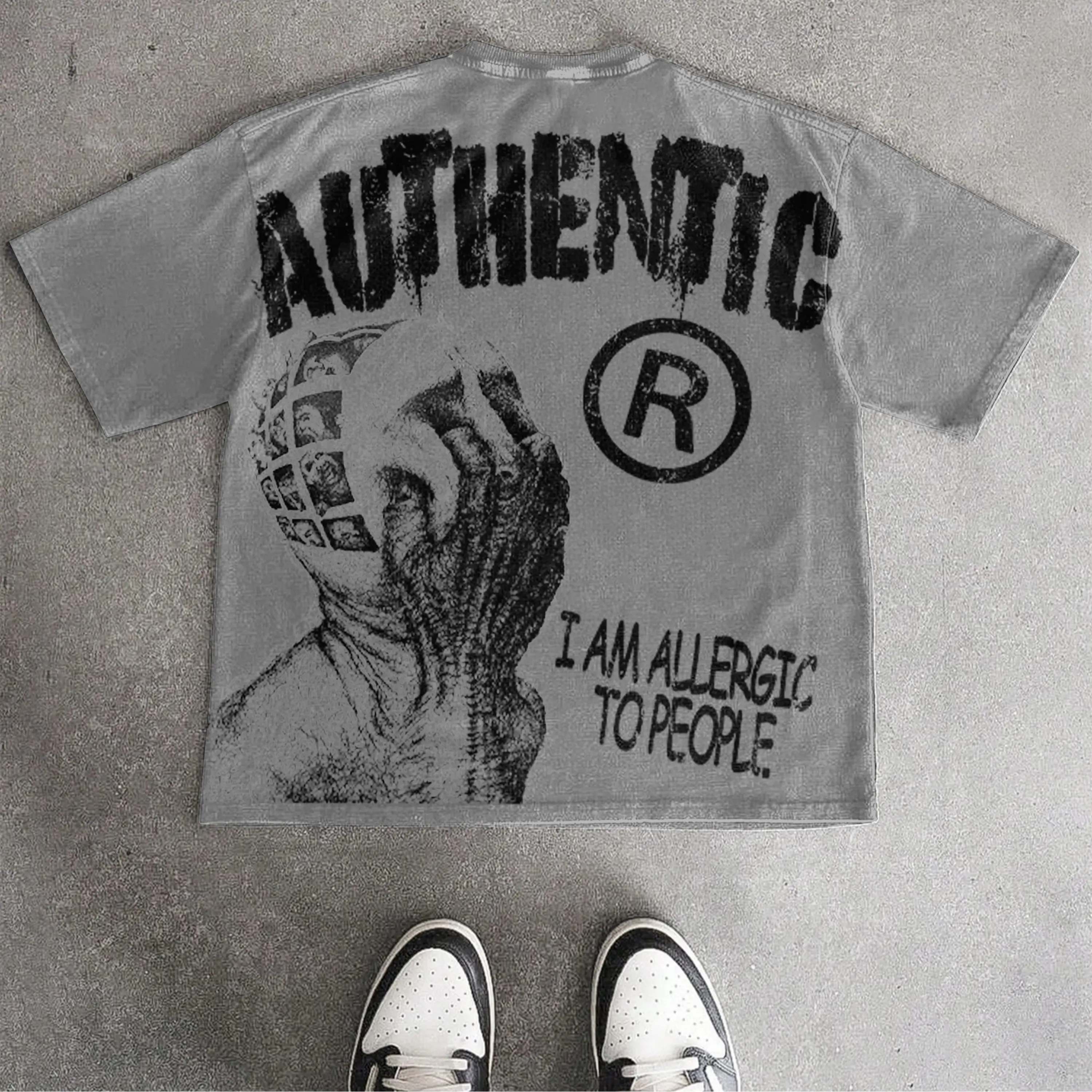 Sopula Studio Men Vintage I Am Allergic To People Graphic Acid Wash Casual Streetwear gray Tshirt SpringStatements