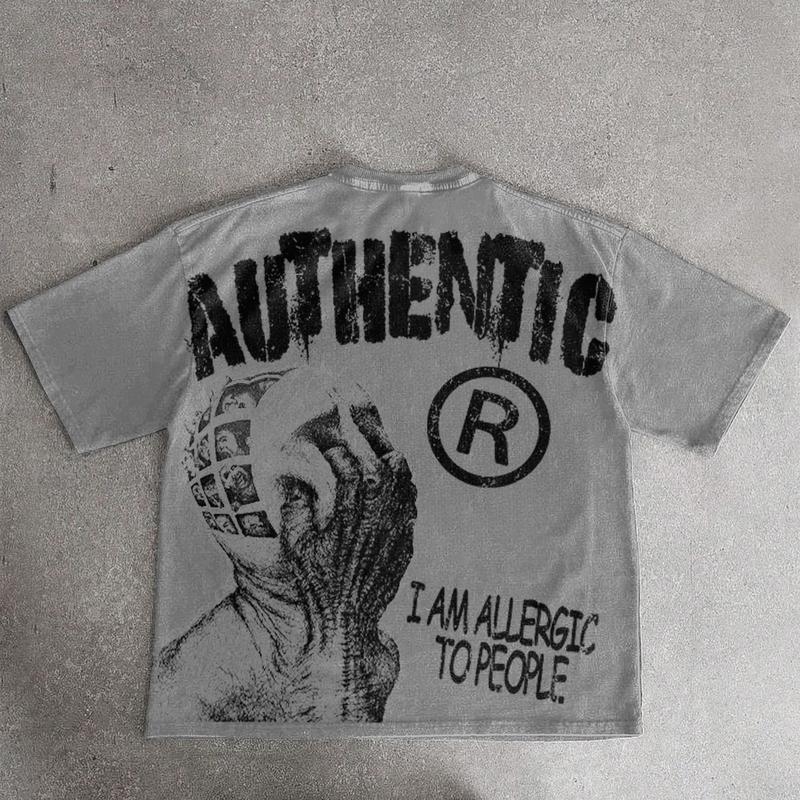 Sopula Studio Men Vintage I Am Allergic To People Graphic Acid Wash Casual Streetwear gray Tshirt