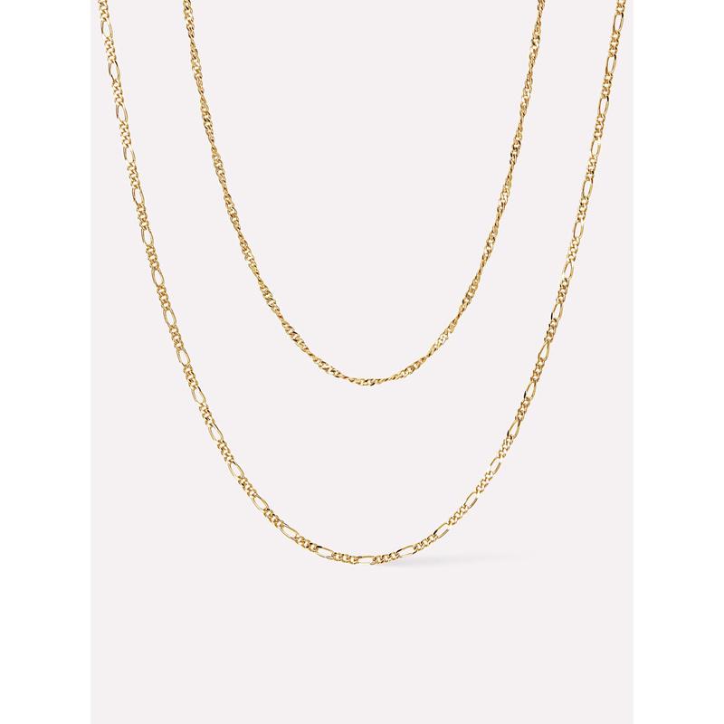 This dainty layered necklace set composed of two heritage chains is the jewelry equivalent of the little black dress. Delicate and dipped in 14k gold, these two chains are perfect for stacking or wearing as separates! Pair this set with statement earrings for an edgy look or with simple studs for a chic minimal vibe.