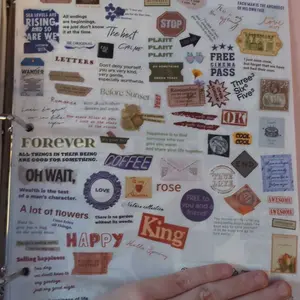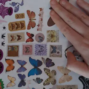 Lots of variety of stickers within each color group. I like that not only does it have stickers of pictures, but stickers of words as well. Perfect for my junk journaling. Tried to add a video to show all the variety, but would not upload.