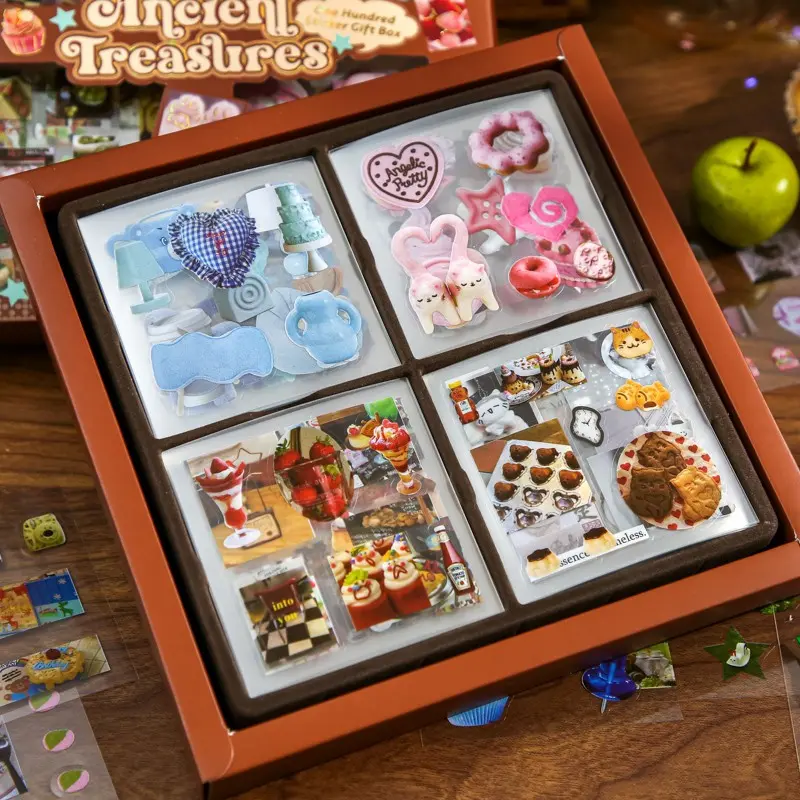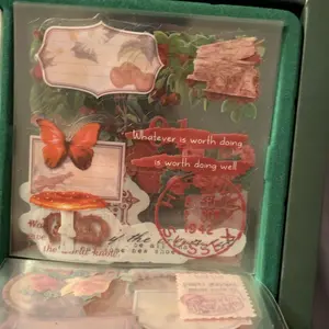 Stickers are very small, but nice. My box came smashed. Can’t store stickers in box.