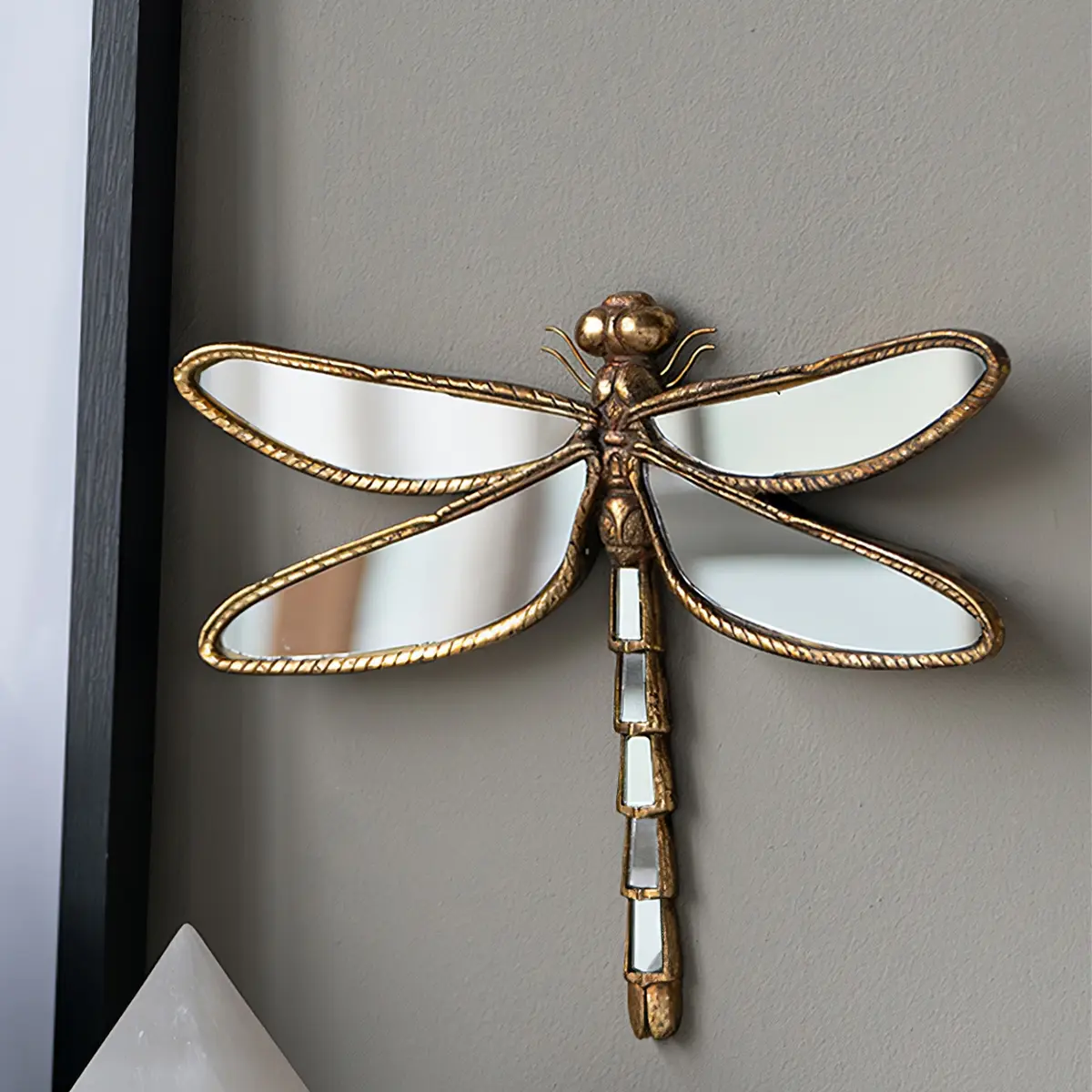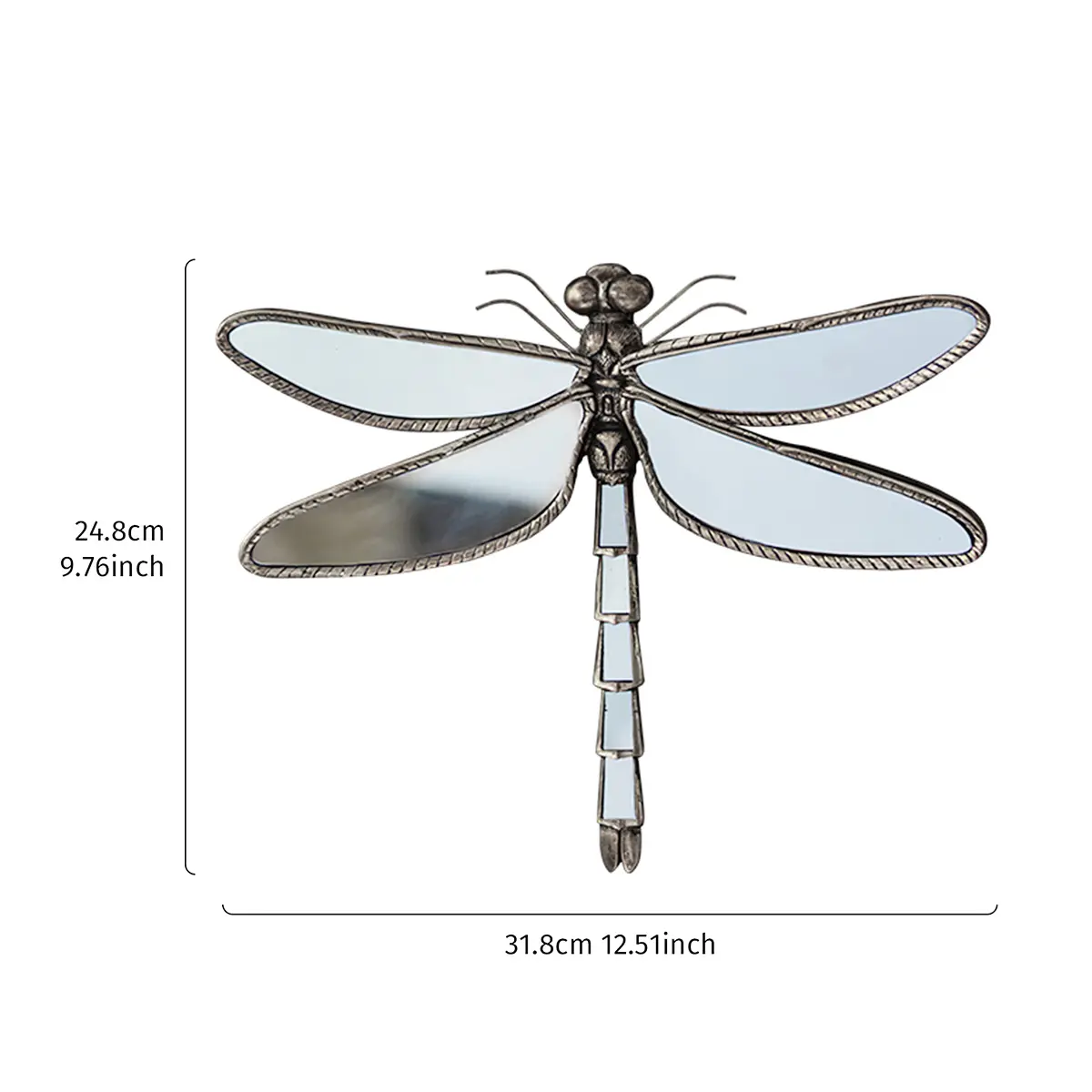 Very disappointed, and pondering if I need to return this dragonfly wall decor because one of the mirrors is missing in the tail and it's not in the packaging so the company knowingly sent me a defective item, ...you can see it was supposed to be there because the glue is in the place the mirror sho