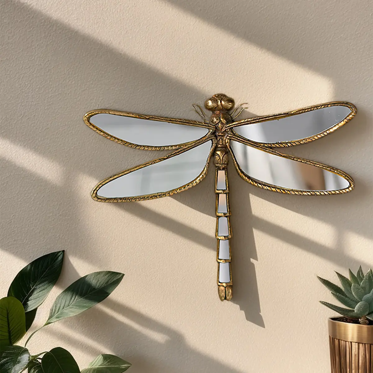 Golden, Dragonfly mirror pendant