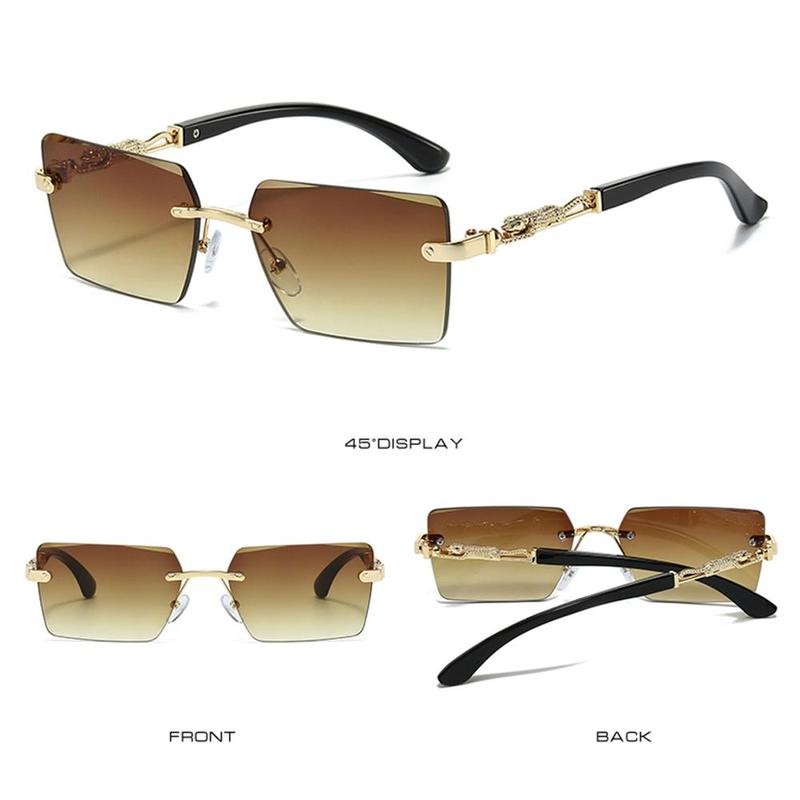 Elevate your style with these Rimless Leopard Decorative Shades! Blending trendy and retro vibes, they’re designed to make a bold fashion statement. Choose from 3 chic color options: smoky gray, gradient blue, and gradient brown. The unique leopard-embellished details add extra luxury and personality. Perfect for casual looks or evening ensembles.