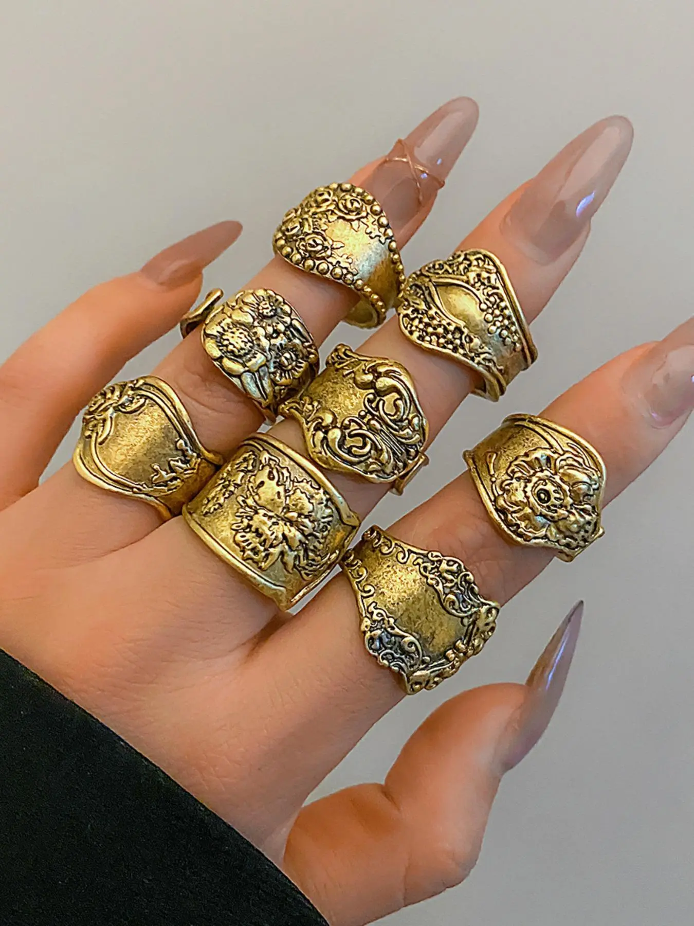 Boho Style Vintage Ring Set, Fashion Retro Ring Set for Party, Daily Decor, Trendy All-match & Exquisite Jewelry for Birthday Gift, Statement Rings, Statement Multi Ring