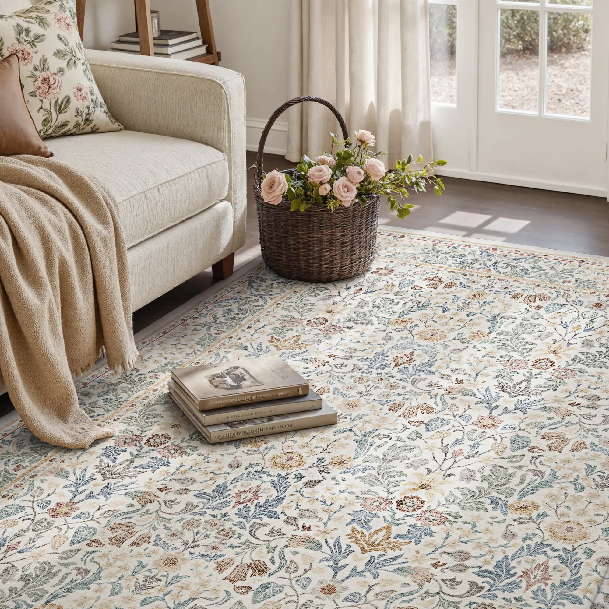 ✨ This vintage floral area rug features a romantic rosette design, adding charm to any room. Neutral tones make it versatile for high-traffic areas like kitchens, entryways, and living rooms. Its aesthetic appeal enhances any cottage-style decor, perfect for cozy summer settings.