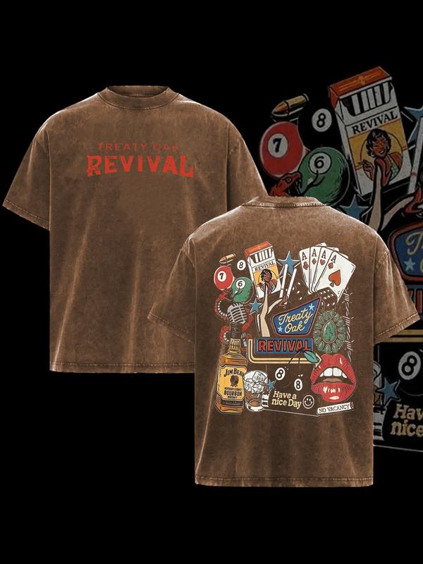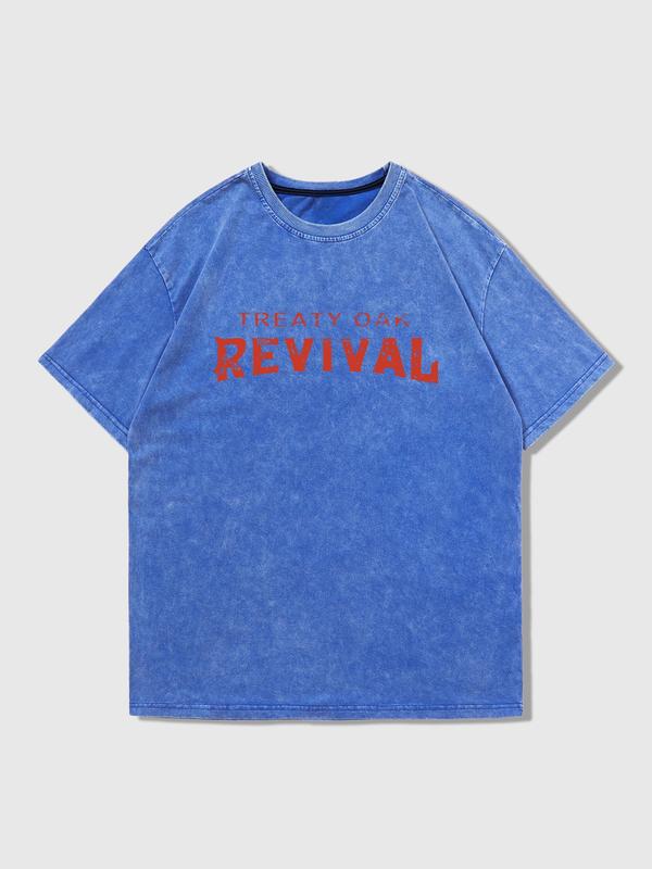 Vintage Treaty Oak Revival Western Cotton T-Shirt, Graphic Denim Pattern, Casual Comfortable Fit, Men's & Women's Fall Winter Top