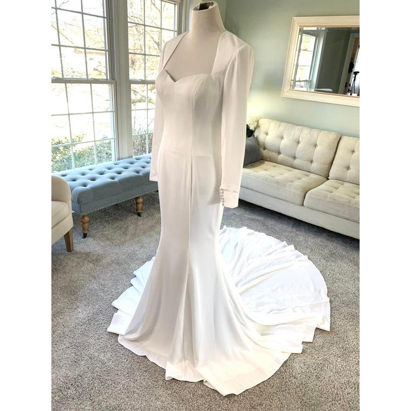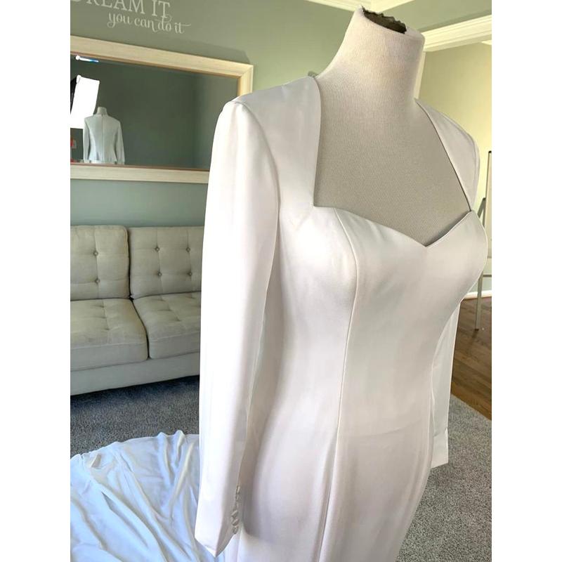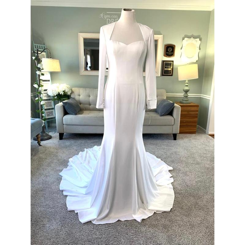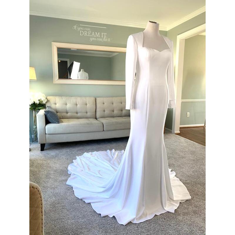This vintage wedding dress is perfect for the bride who wants a touch of classic and vintage. The neckline is definitely a show-stopper and the sleeves can be embellished with lace as well. We work with all colors, so you can request a different color for this dress as well.