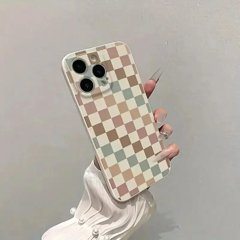 Vintage White Checkered Anti-drop Full Coverage Precision Protective Case for Apple iPhone 17 Pro Max 17 Air 16 Plus 15 14 13 12 11 Xs with TPU Material Shockproof Fashionable Cover Reinforced Edges Durable Casing.HMF42