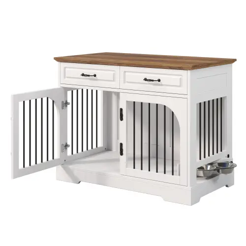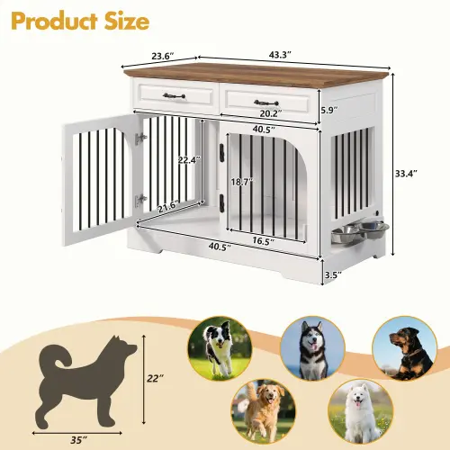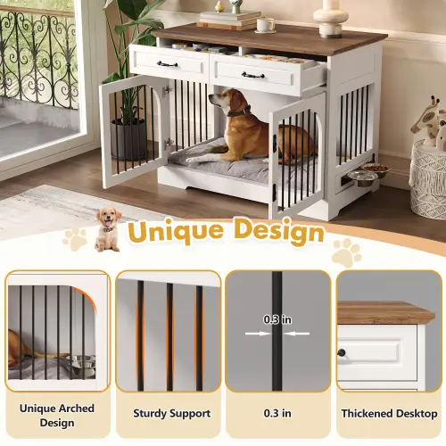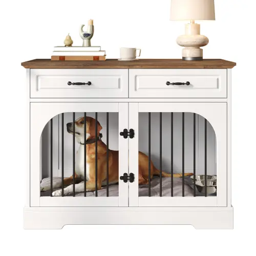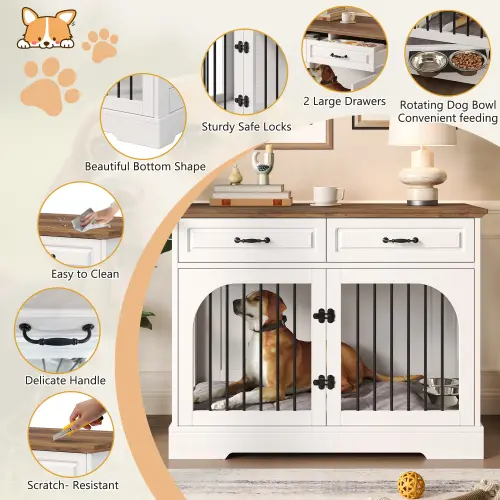 ·Durable and Sturdy: Crafted from high-quality MDF boards, this dog crate furniture offers excellent stability and durability. The drawer fronts feature a smooth painted finish that is easy to clean, while the overall structure is designed for long-term indoor use.