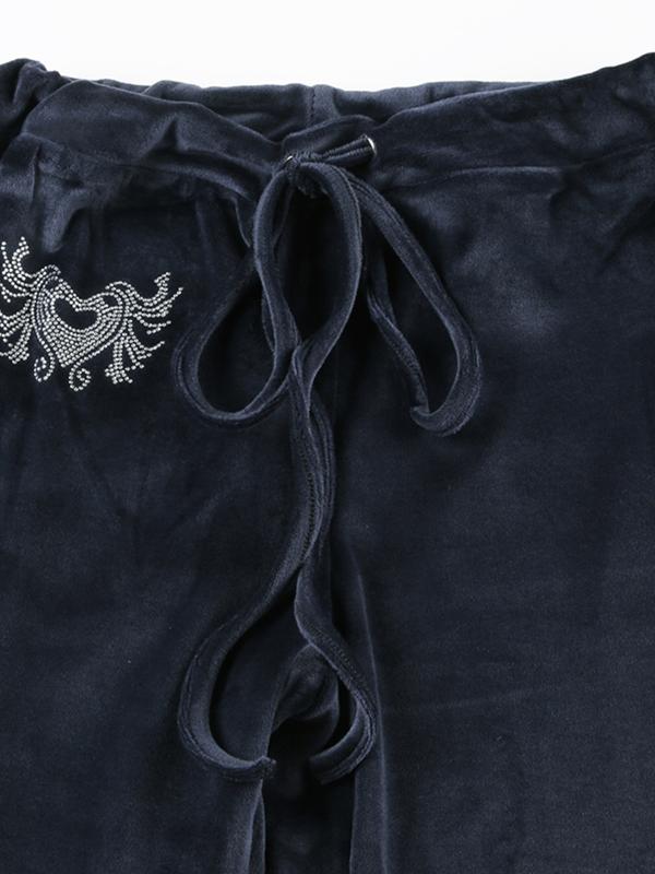Vintage Y2K Heart Rhinestone Velvet Low Waist Flare Pants Women, Slim-Fitting All Season Fashion, Moderate Fabric Style