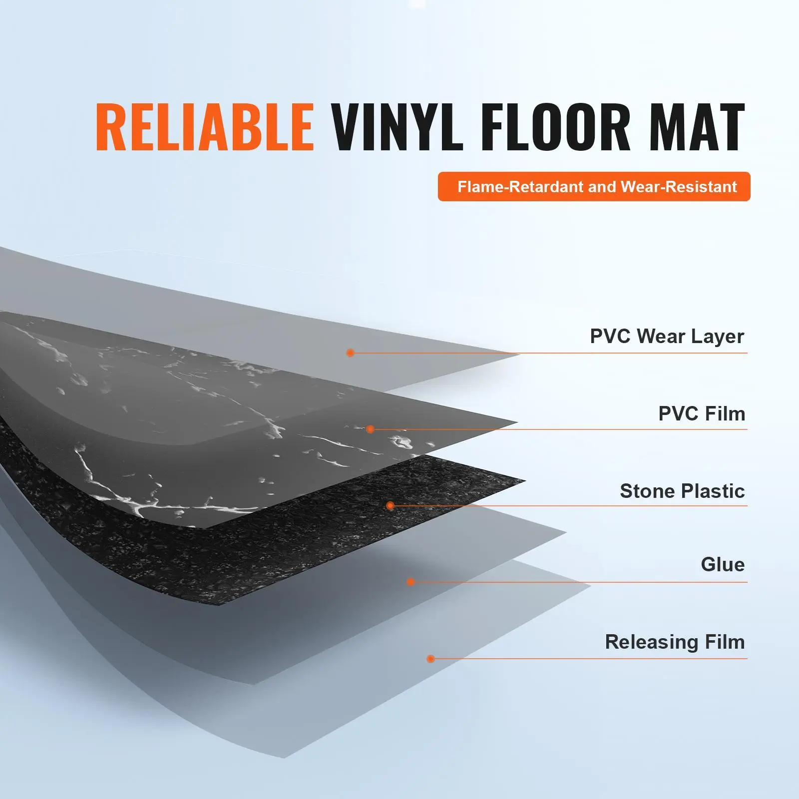 • Waterproof and Easy to Clean: The surface of the material is waterproof, resistant to stains, and easy to clean with a simple wipe, making maintenance hassle-free. Installation Tips: 1. Keep the surface of the floor clean and no other impurities, 2. Ensure both the peel and stick floor tile and the installation surface are dry.