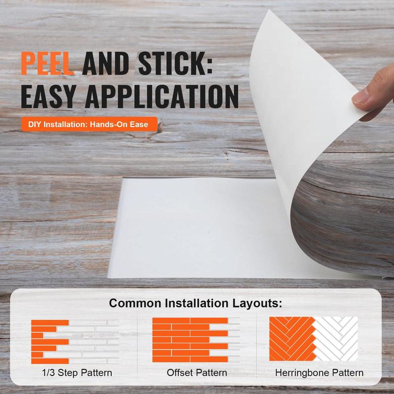 5. VEVOR Self Adhesive Vinyl Floor Tiles 36 x 6 inch, 36 Tiles 0.62mm Thick Peel & Stick, Vintage Wood Grain DIY Flooring for Kitchen, Dining Room, Bedrooms & Bathrooms, Easy for Home Decor