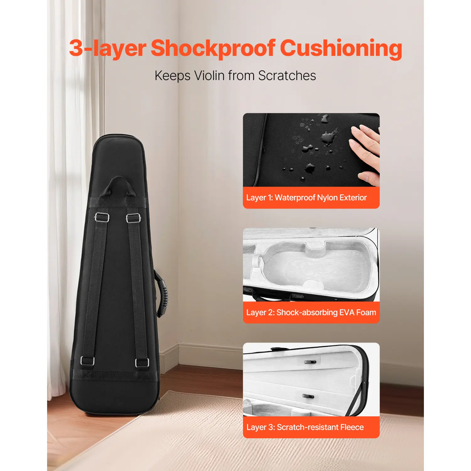 • Reinforced 360° Violin Shielding: Made from durable nylon, this case resists pressure. Soft EVA foam absorbs shocks. Plush lining reduces scratches, keeping your violin steady. Ideal for every journey.
