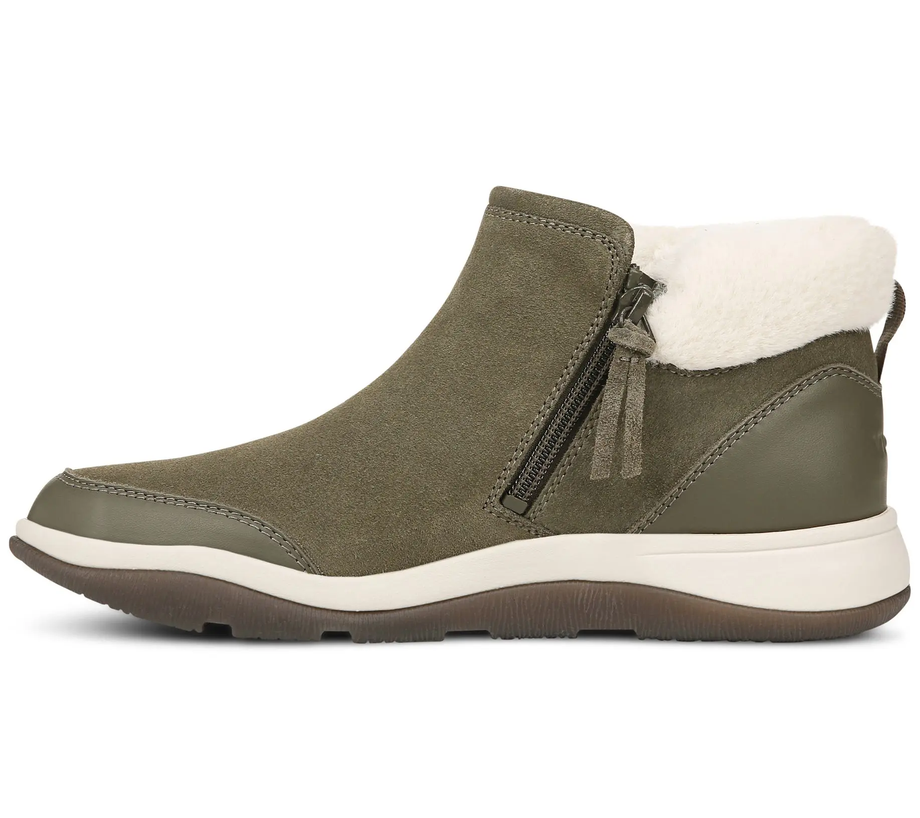 ·Water-repellent, suede and smooth leather upper, side zip with tassel pull, faux-fur trim