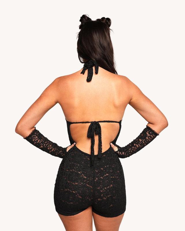 Elevate your style with the VIP Behavior Lace Romper with Sleeves. This ensemble features lace details and a flattering fit, perfect for making a statement. The flirty halter cut ensures you stand out. Slip into this romper and let your 'fit do the talking. It's your pass to the spotlight.