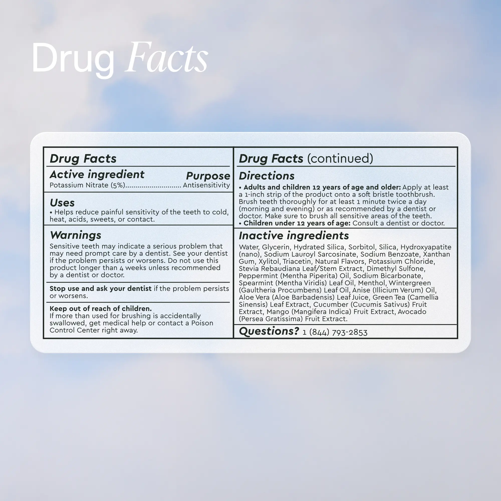 Powered by 5% Potassium Nitrate, our formula is specifically engineered to reduce tooth sensitivity at the source. With twice-daily brushing, it builds a long-lasting protective barrier against cold, heat, acids, and sweets. It’s the ultimate defense for anyone who wants to reclaim their favorite foods without the "zing."