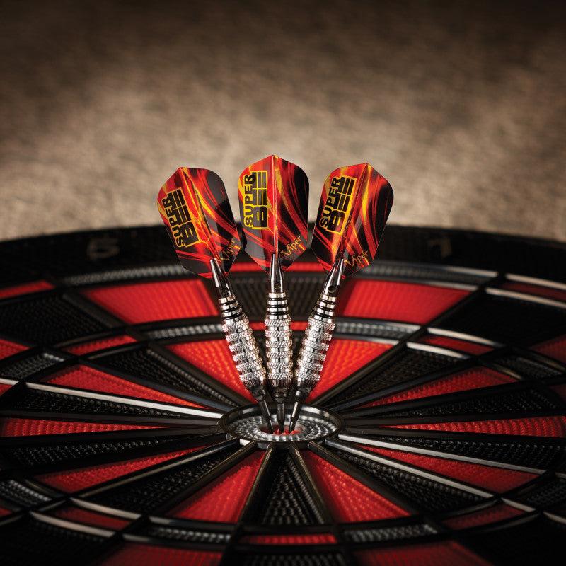 Great things come in small packages with the Viper Super Bee Soft Tip Darts, designed for use with either electronic dart boards or most sisal dart boards. These diminutive darts are packed with features starting with the barrel, fashioned from your choice of materials. A brass alloy will give you dart a classic look with high quality and durability. Nickel silver barrels will feature similar toughness to brass with a unique silver appearance. Finally, the black coated brass will give your darts a no-nonsense look and a sure grip anti-slip coating. Each barrel enjoys knurled bands and hand painted rings, allowing your grip to remain consistent throw after throw. The Super Bee Darts feature tough, lightweight Aluminum Micro Shafts. These shafts feature locking holes that allow a more secure fit to your barrel; you won’t find yourself retightening these shafts after a shot or two. Finally, each dart is finished off with the flashy holographic designs adorning each flight, for a spectacular look. Each set includes three flights, three shafts, and three 2BA Tufflex II Tips.