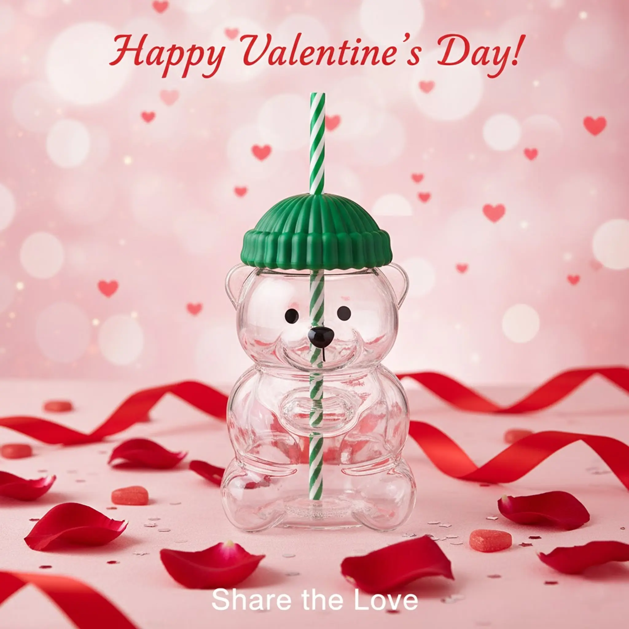 ·This teddy bear glass mug features a charming pink & green color scheme. 🌸