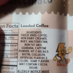 * 120 calories, 3g sugar, 10g protein, 180mg caffeine
