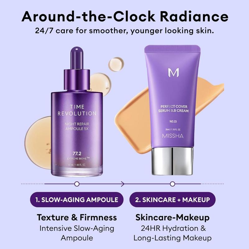 Cardi B’s viral no-foundation routine for effortless glow—powered by Serum BB Cream by day and Night Repair Ampoule by night.