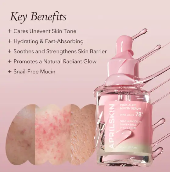 Pink Aloe Mucin Serum (30ml) – Your go-to for hydration and calm, helping with uneven skintone, giving you that radiant glow. 🌸💧