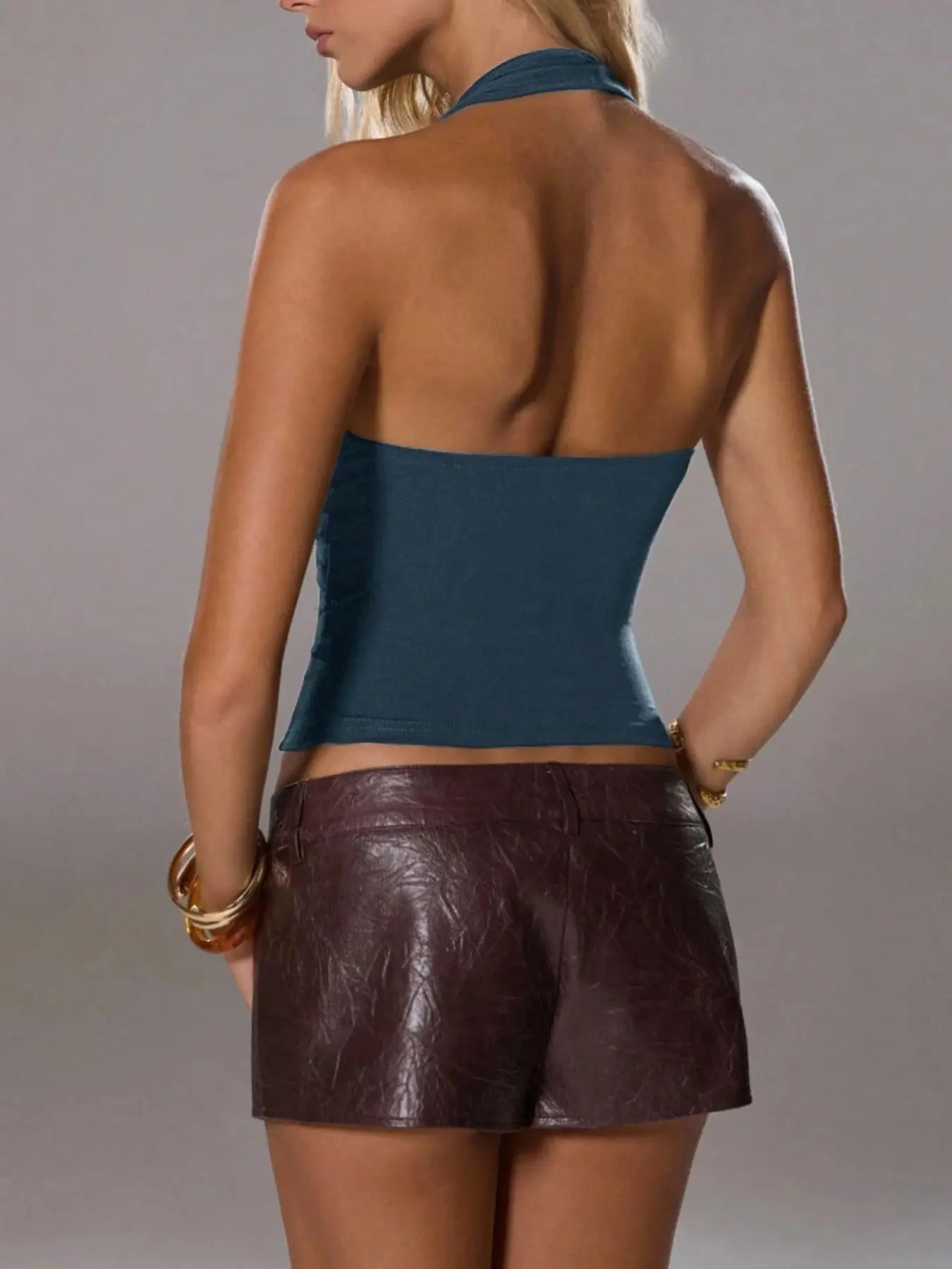 5. Viral Teal Halter Crop Top Women | Deep V Cutout + Backless Design | Y2K Summer Outfit Must-Have