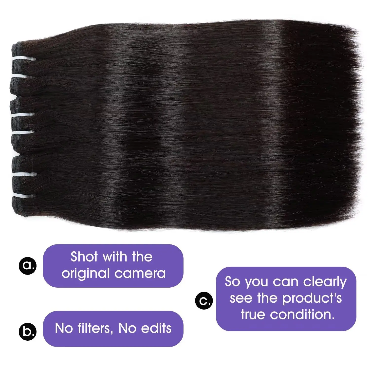Lemoda Straight Virgin Human Hair Bundles Indian Straight Unprocessed Raw Human Hair Extensions Thick Ends Hair Weave Bundles Natural Black