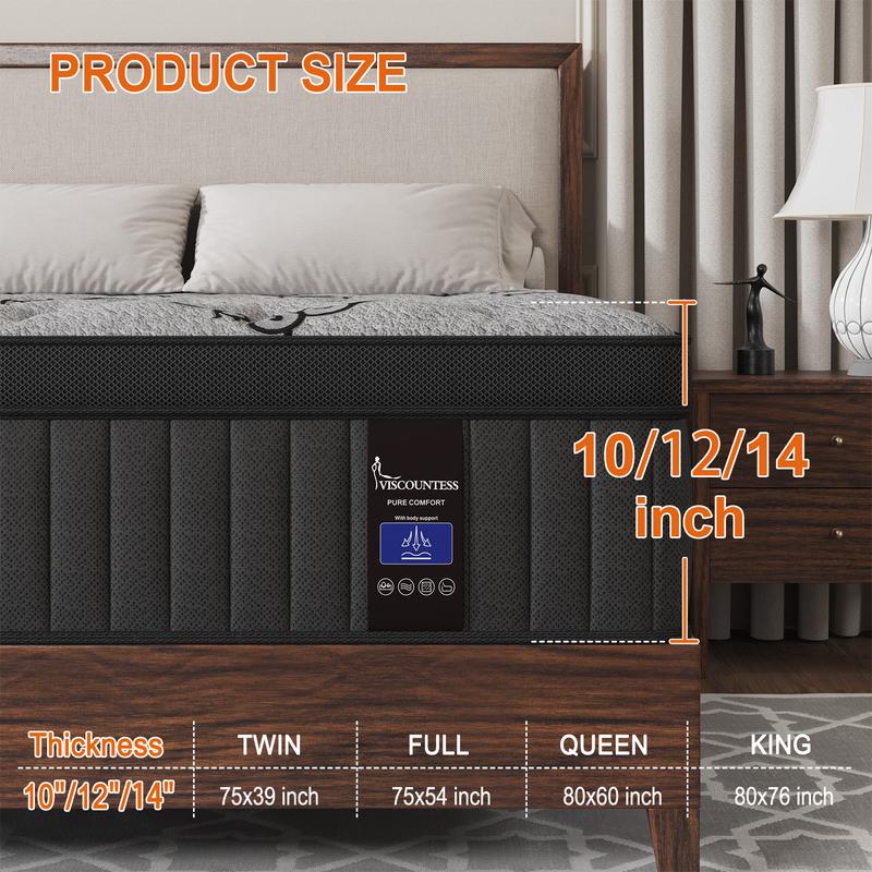 【Mattress in a Box & Safety Assurance】Delivered in a vacuum-sealed box, the memory foam mattress is easy to set up and compatible with most bed frames, including platforms, box springs, and adjustable bases. VISCOUNTESS mattress is made with CertiPUR-US certified foam that is free from fiberglass, ensuring both safety and comfort.