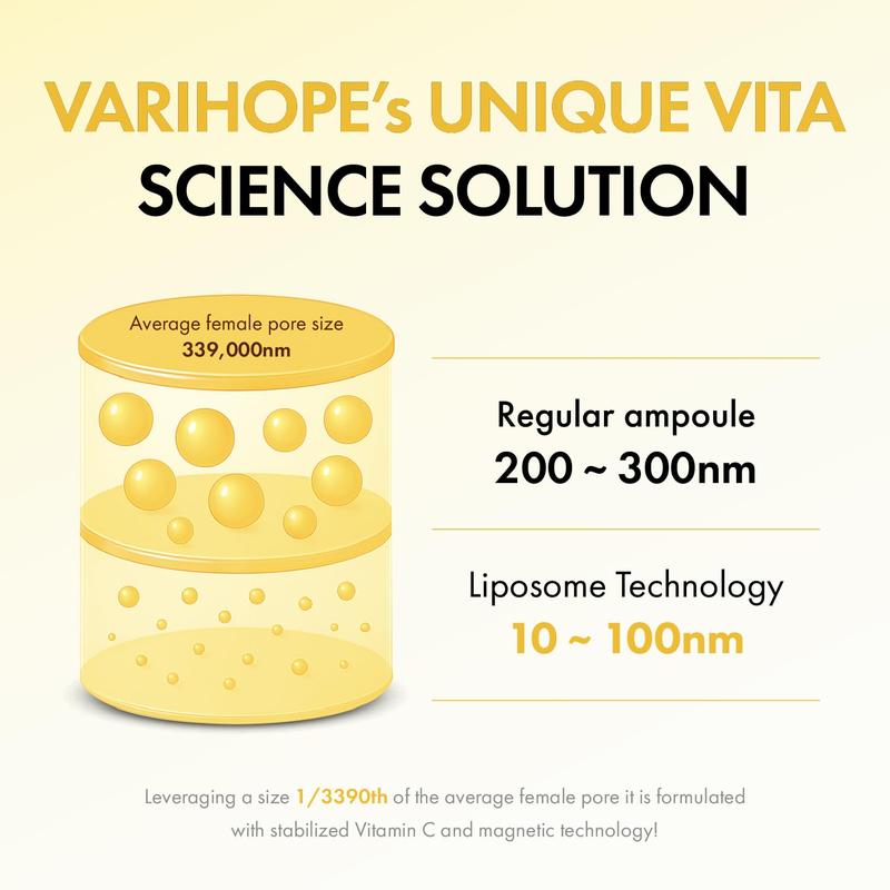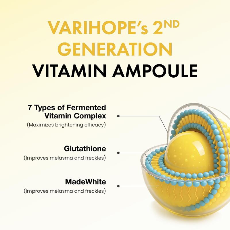 ·VARIHOPE VITA-AGING PURE C AMPOULE (20ml / 0.67 fl oz) - A highly concentrated Vitamin C serum formulated with 145,000ppm pure ascorbic acid. It supports skin brightening and reduces the appearance of uneven tone, helping to enhance the skin's natural radiance. Ideal for targeting areas of concern and promoting a smoother, more luminous complexion.