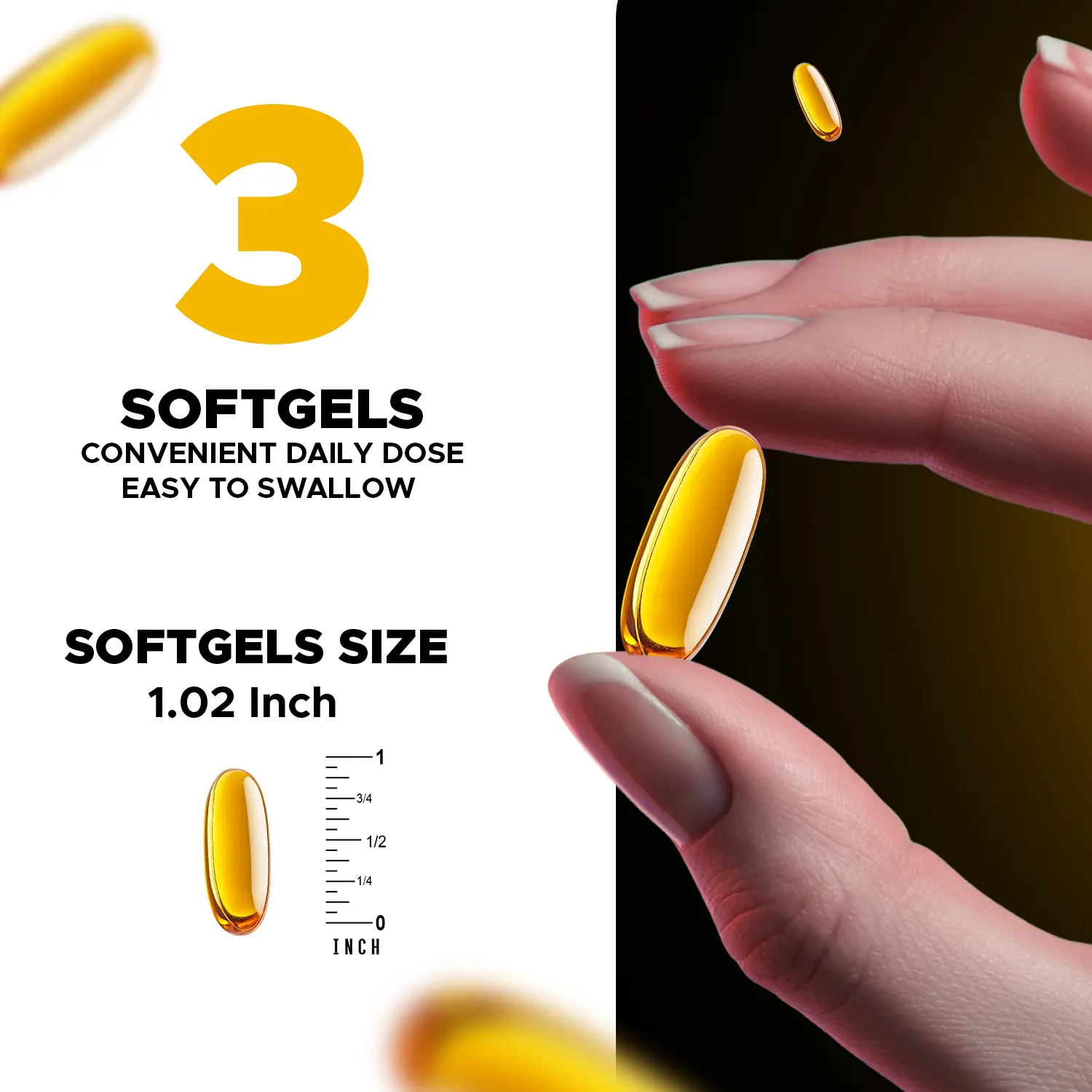 ·180 Softgels: The supplement comes in a pack of 180 softgels for convenient consumption.