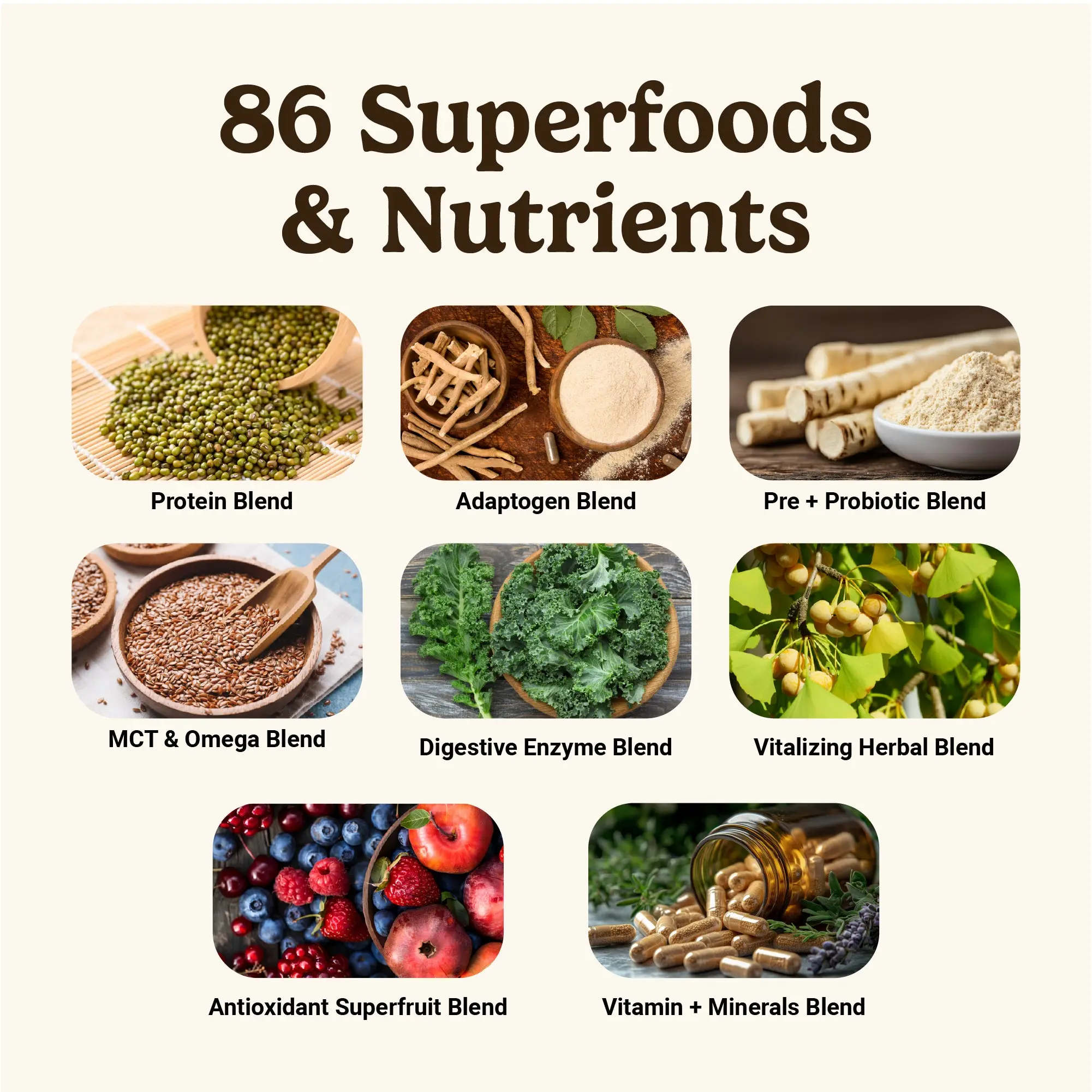 ·KSM-66 Ashwagandha, vitamins, daily greens, pre+probiotics