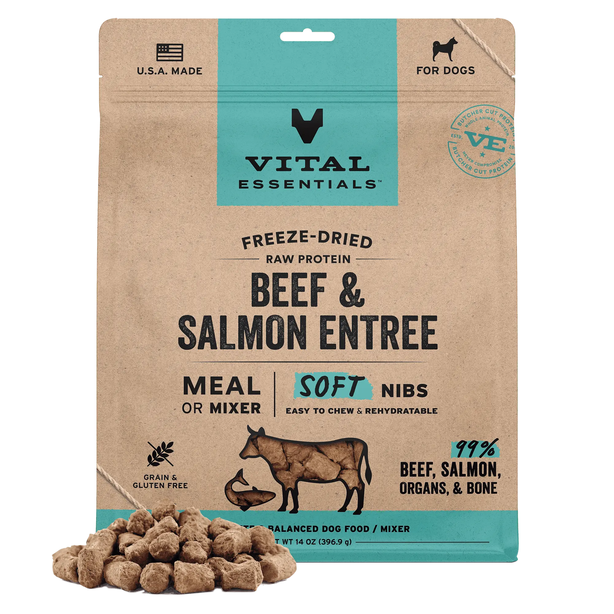 Freeze-Dried Beef & Salmon Entree & Mixer Dog Food Soft Nibs