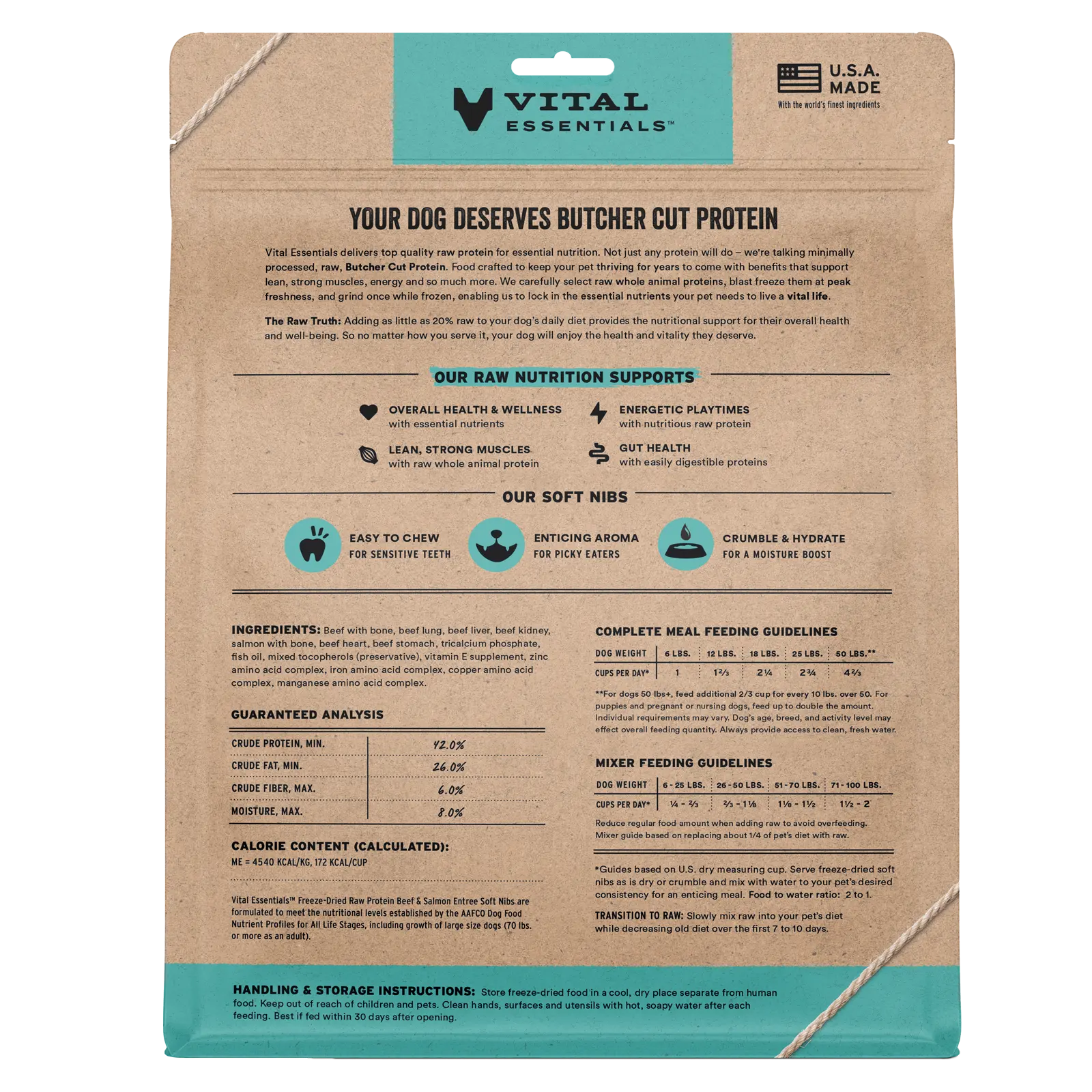 Give your dog the best of land and sea with our freeze-dried raw Beef & Salmon Soft Nibs. Made with 99% raw protein from butcher cut beef, wild-caught salmon, organs, and bone. These tender morsels are perfect for sensitive teeth and entice picky eaters with an irresistible aroma. Serve as a complete meal or mix in 20% to enhance any bowl with raw nutrition. Simply crumble and rehydrate for added moisture, delivering essential nutrients that support your pet's strength, digestion, and vitality.