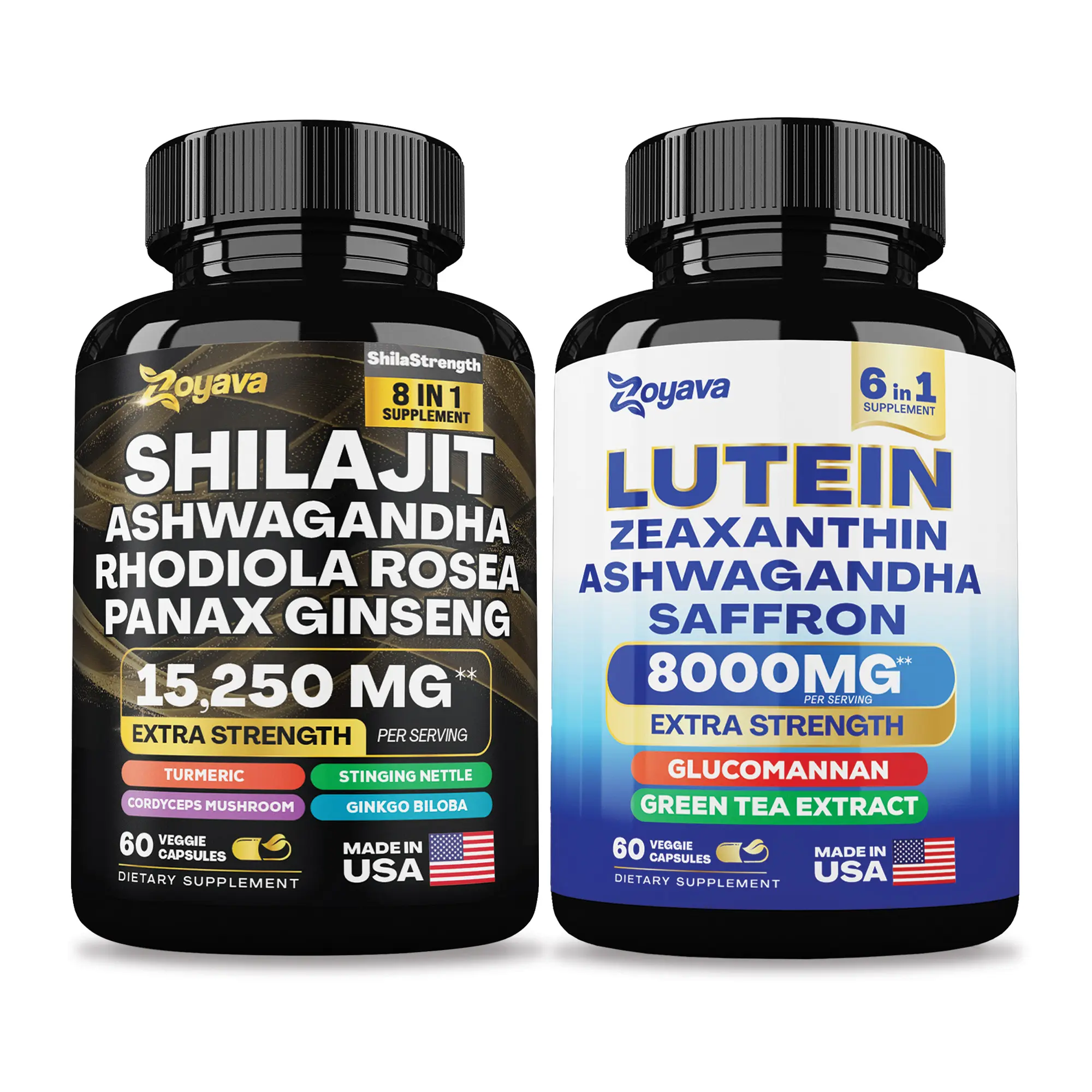 Zoyava Vital Fusion Duo: Shilajit Power Blend (15,250MGs) & Lutein Zeaxanthin Supplements (8000MG)