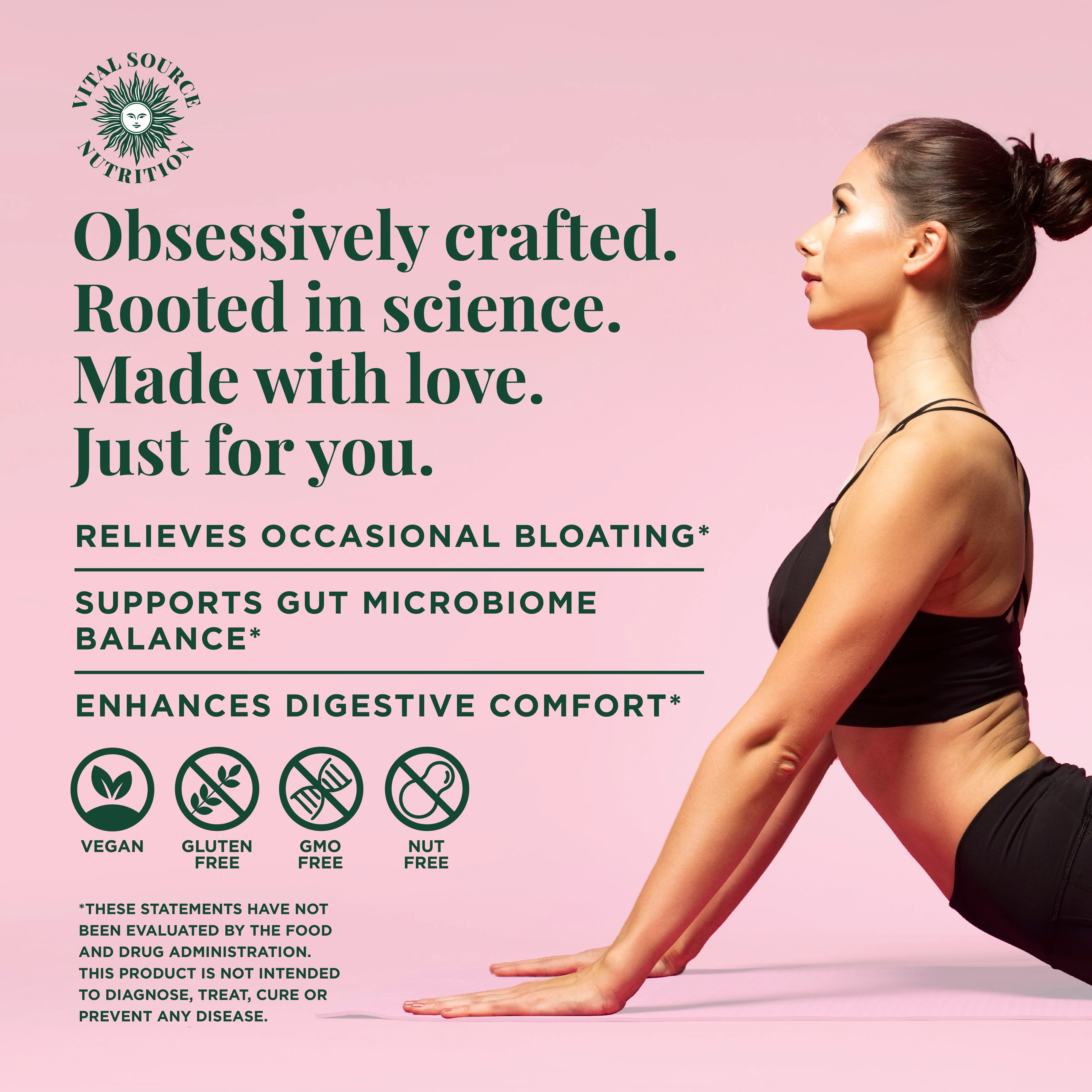 Suggested Use: Take 2 capsules daily. Before meals, after meals, or whenever bloat tries to start drama. Trust your gut.