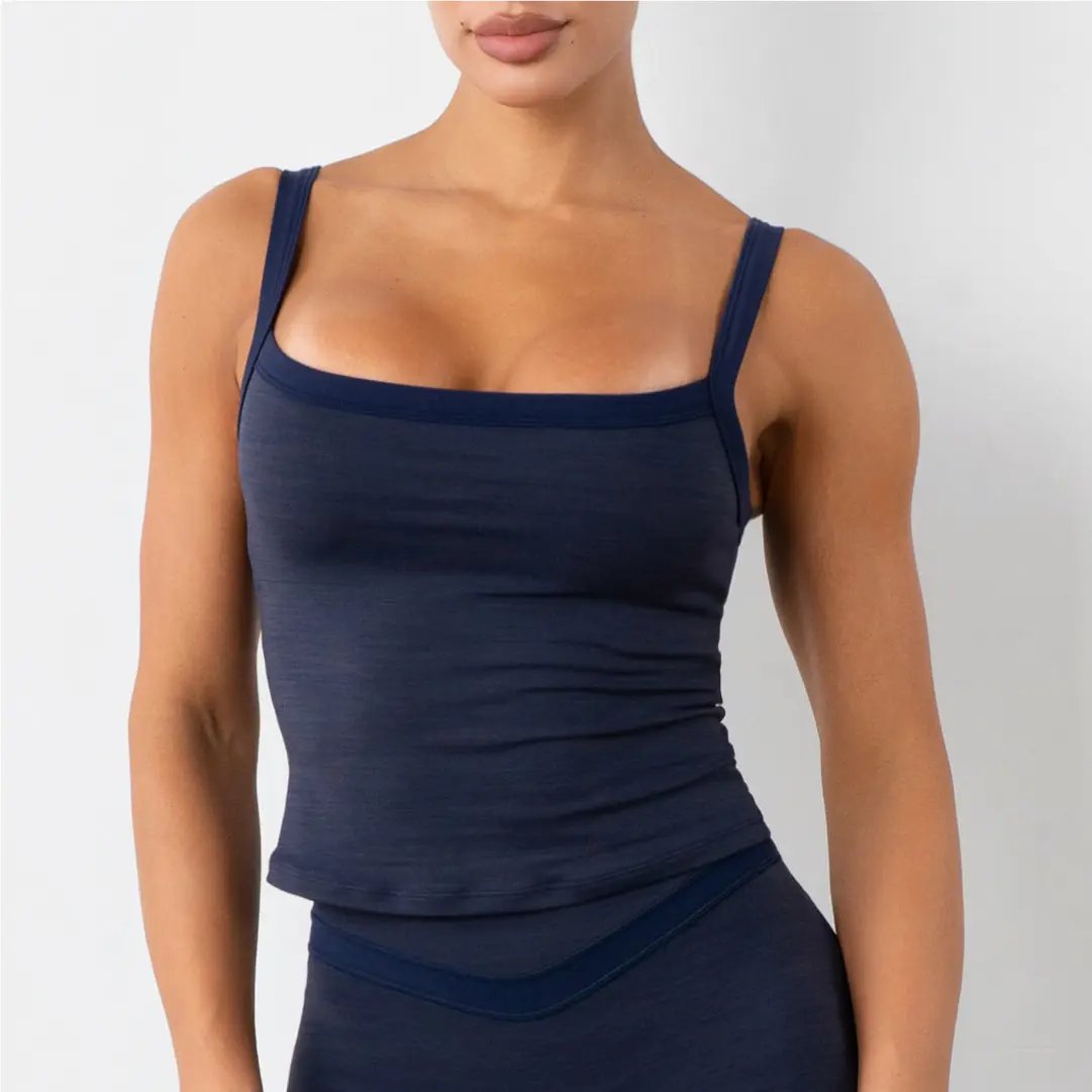 The Daydream Block Square Tank is a Vitality classic. The simple square neck line, color-contrast straps, and wildly comfortable fit are special, but it’s the versatility that lands her in true fan-fave territory with a next-to-naked handfeel and sweat-wicking and anti-microbial performance tech that make her great for sweaty flows or Pilates sessions, running errands, or just relaxing on the couch. Features a no-dig underbust band and removable bust pads.