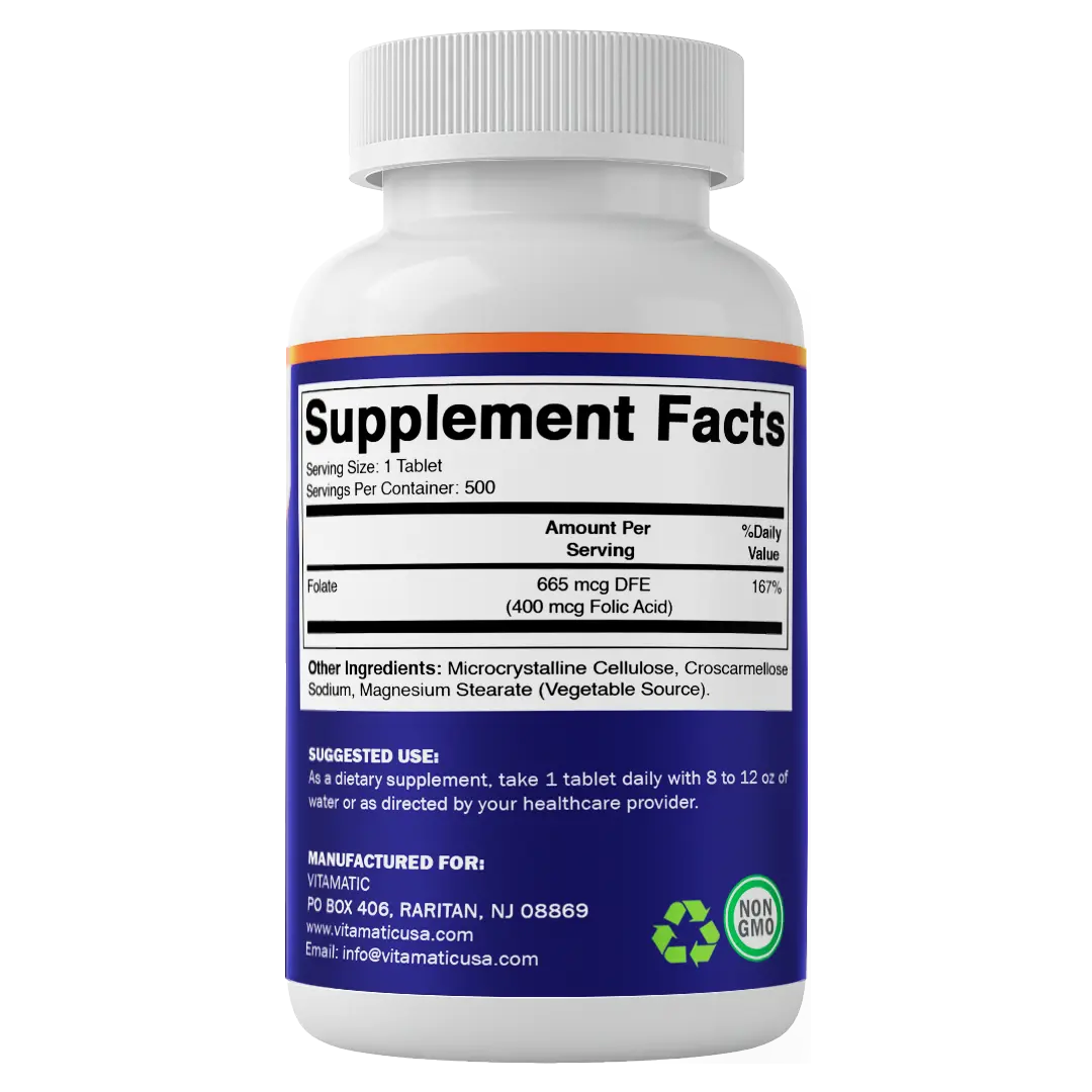 Vitamatic Folic Acid 400 mcg - 500 Vegetarian Tablets