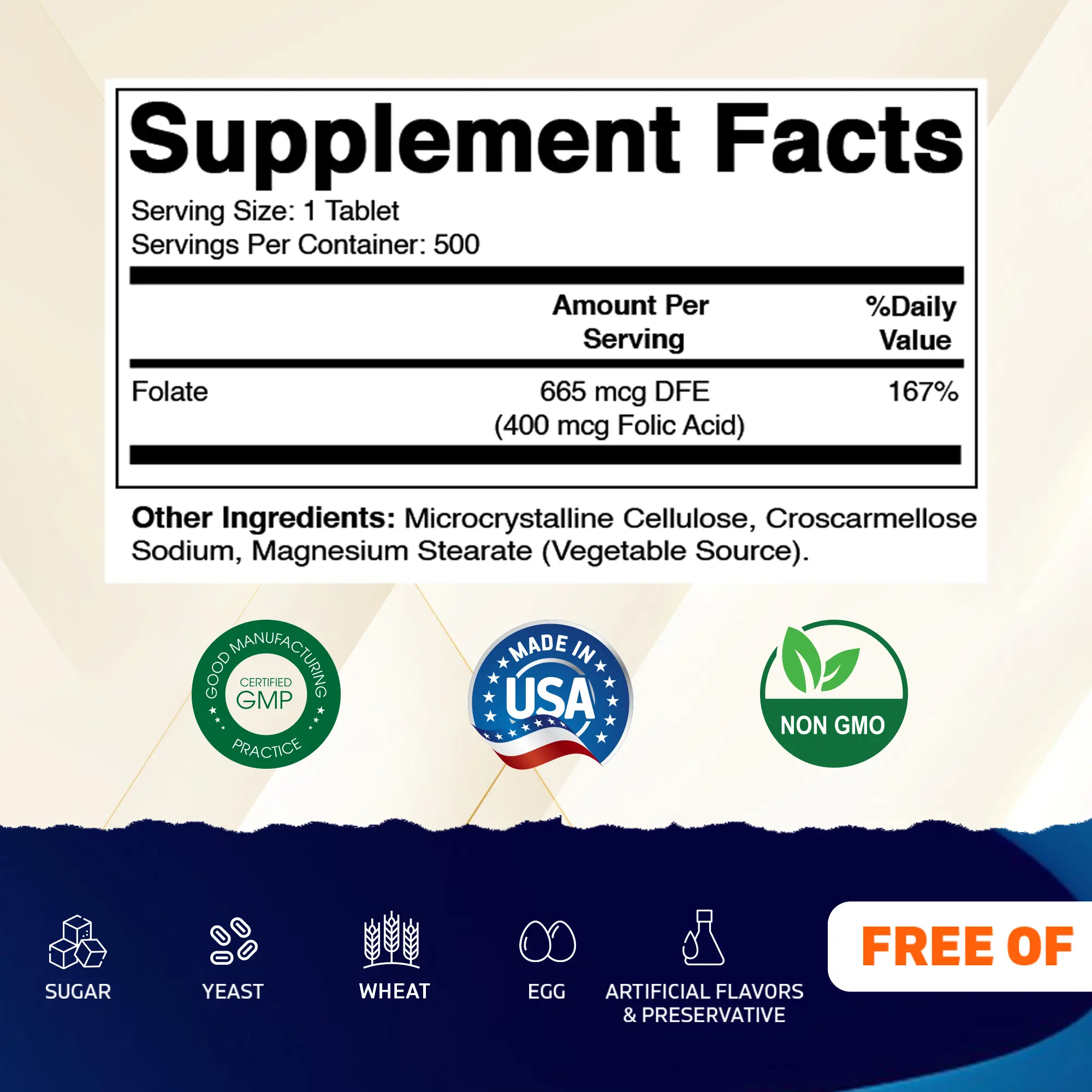 Vitamatic Folic Acid 400 mcg - 500 Vegetarian Tablets is a dietary supplement that provides folic acid (vitamin B9) in a 400 mcg vegetarian tablet form. It’s designed for people who want to support their daily intake of vitamin B9, especially when dietary intake may not meet recommended levels.