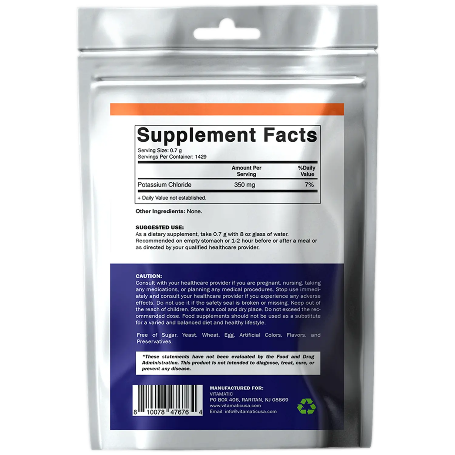 Contains pure Potassium Chloride with no added ingredients, binders, or fillers. Provides a clean and simple formula in every serving.